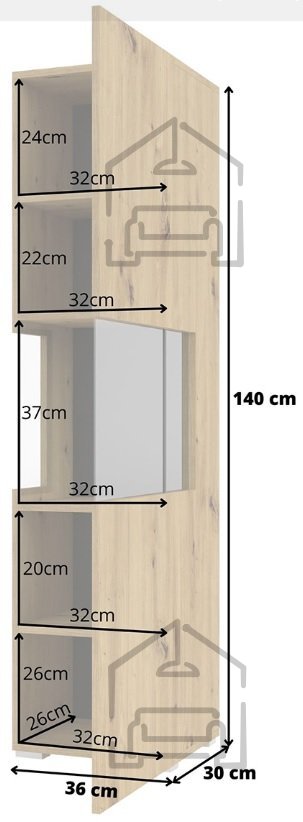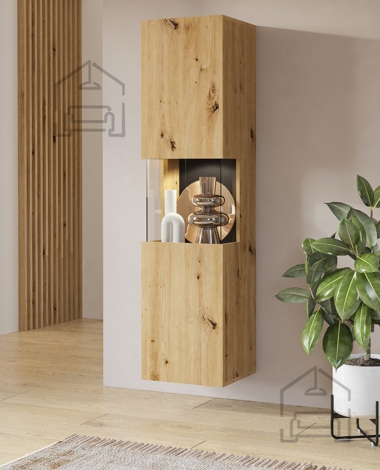 Die Vitrine Ava misst 36x30x140 cm – kompakt genug, um in nahezu jeden Raum zu passen, und dennoch geräumig, um Ihre Lieblingsstücke stilvoll zu präsentieren. Gefertigt ist sie aus hochwertiger, laminierten Spanplatte, die Stabilität und Langlebigkeit garantiert. Der warme Artisan-Eichenfarbton bringt ein natürliches, gemütliches Ambiente in Ihr Zuhause und harmoniert wunderbar mit verschiedensten Einrichtungsstilen.