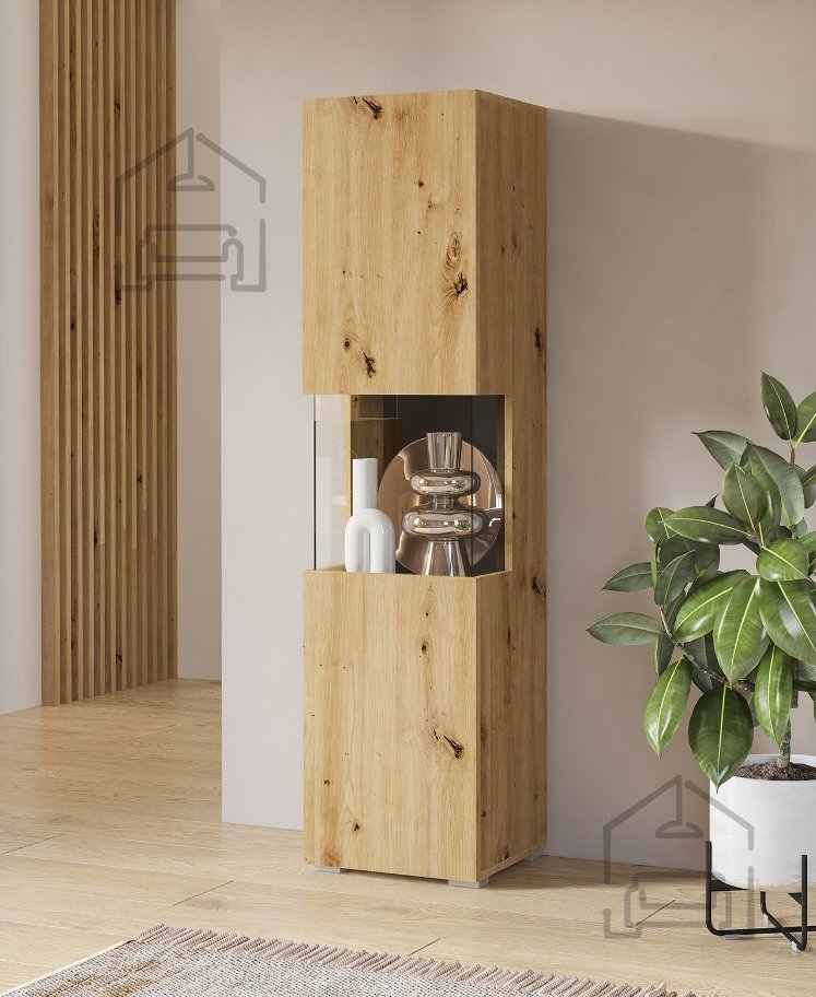 Wir präsentieren Ihnen die elegante und zugleich praktische Vitrine Ava in Artisan-Eichenfarbe, Modell 24RCLM05. Dieses wunderschöne Möbelstück ist so gestaltet, dass es nicht nur Stauraum bietet, sondern Ihrem Zuhause auch eine stilvolle Note verleiht.