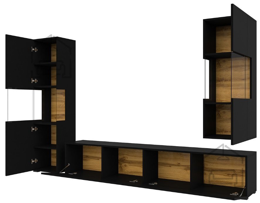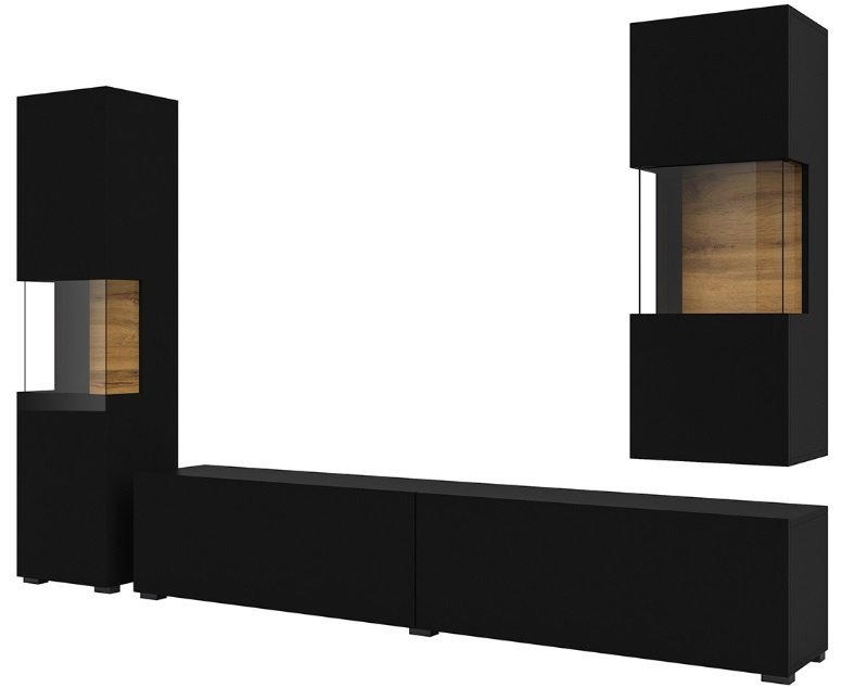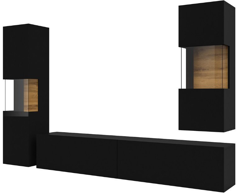 Entdecken Sie die perfekte Kombination aus Stil und Funktionalität mit unserer neuesten Wohnwand-Kollektion Ava – Schwarz Onyx/Wotan Eiche – 24WNLM10. Diese Serie richtet sich an alle, die einen minimalistischen Stil und klare, geometrische Formen schätzen, die sich harmonisch in moderne Wohnräume einfügen. Durch die zeitlose Farbkombination aus schwarzem Onyx und Wotan-Eiche passt sie ideal in jedes Zuhause.
