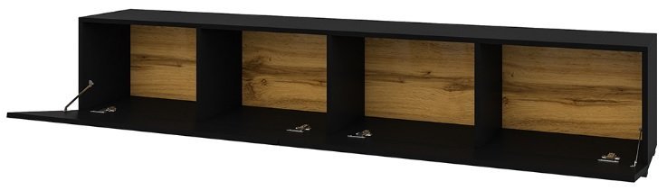 Entdecken Sie die perfekte Kombination aus Eleganz und Funktionalität mit der TV-Kommode Ava, die mit den Maßen 180x35x30 cm überzeugt. Dieses besondere Möbelstück besteht aus hochwertiger, laminierten Spanplatte, die Langlebigkeit und Widerstandsfähigkeit gegenüber Abnutzung garantiert. Mit ihrer modernen Farbgebung in Schwarz Onyx und Wotan Eiche bringt die Kommode Ava einen Hauch von Raffinesse in Ihr Zuhause. Entworfen und gefertigt in der renommierten Helvetia Meble Fabrik in Polen, vereint dieses Möbelstück europäische Qualität mit zeitlosem Stil.