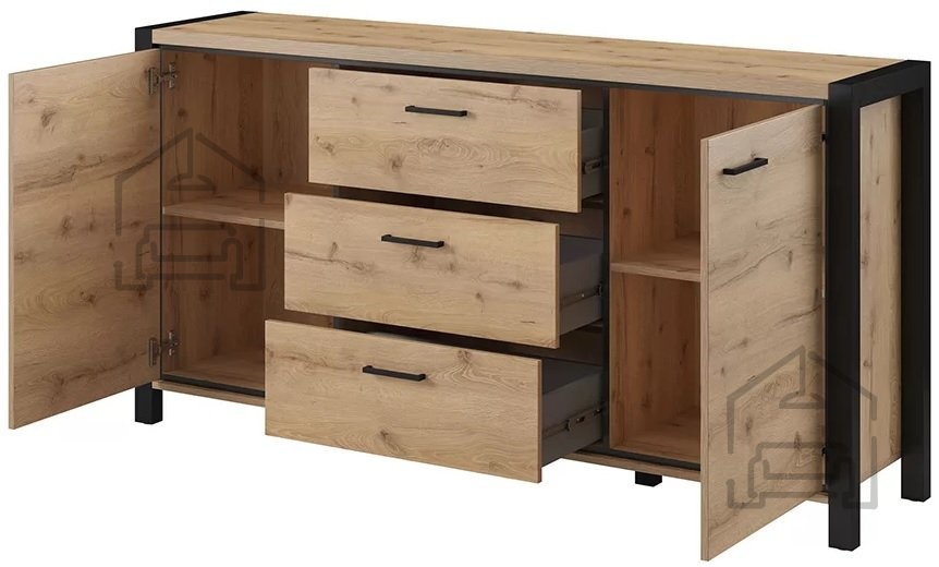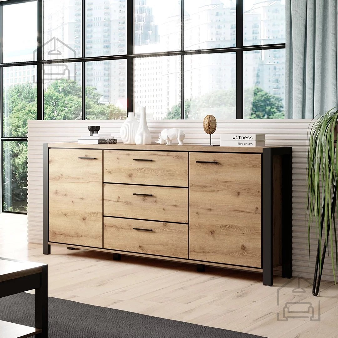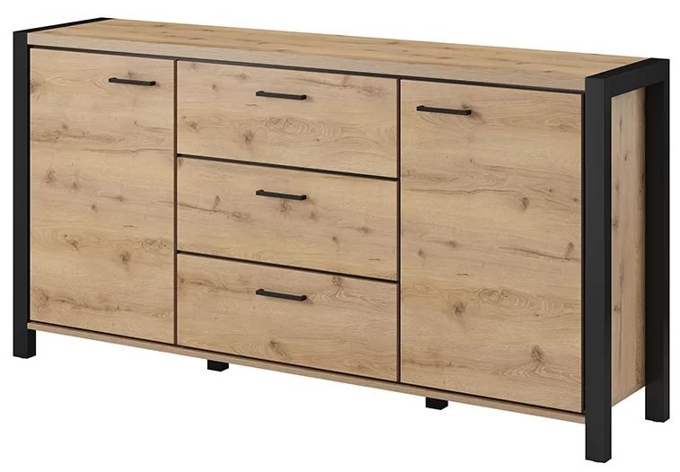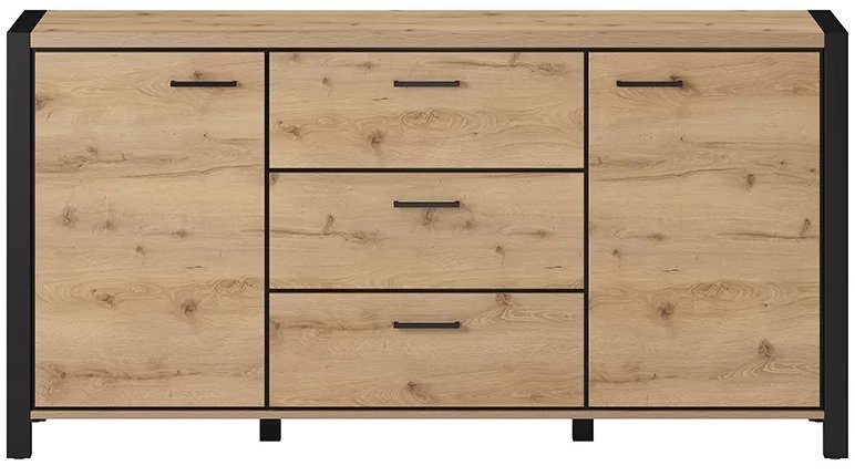 Die Wohnzimmerserie AKTIV ist im industriellen Stil gestaltet – schlicht in der Form, robust im Ausdruck und ausgesprochen praktisch. Die besondere Oberflächengestaltung verleiht jedem Raum einen individuellen Charakter. Die natürliche Holzfarbe mit ihrer typischen Maserung wird durch ein tiefes Schwarz eingerahmt – eine Kombination, die dynamisch, kontrastreich und gleichzeitig harmonisch wirkt! Mehrere Elemente in der Kollektion bieten zahlreiche Gestaltungsmöglichkeiten, während durchdachte Details ein schönes und funktionales Wohnzimmerambiente schaffen.