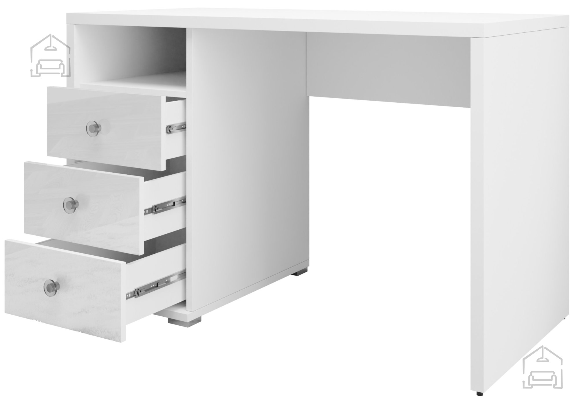 Der Schreibtisch Iris II - 2497MA03 ist mehr als nur ein Möbelstück – er spiegelt Ihren Sinn für Stil und Ordnung wider. Mit seiner zeitlos weißen Hochglanzoberfläche und der präzisen Verarbeitung erfüllt er alle Ansprüche an Platz, Design und Funktionalität. Warten Sie nicht länger und sichern Sie sich Ihren Schreibtisch Iris II noch heute bei Moebelundmoebel.at – für ein Arbeitsumfeld voller Eleganz und Effizienz.