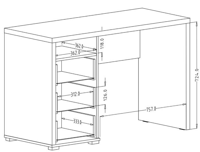 Die geräumigen Schubladen bieten Platz für alles, was Sie beim Arbeiten benötigen, während die breite Arbeitsfläche genug Raum für Computer, Unterlagen oder auch dekorative Pflanzen lässt, die Ihrem Arbeitsplatz eine persönliche Note verleihen.