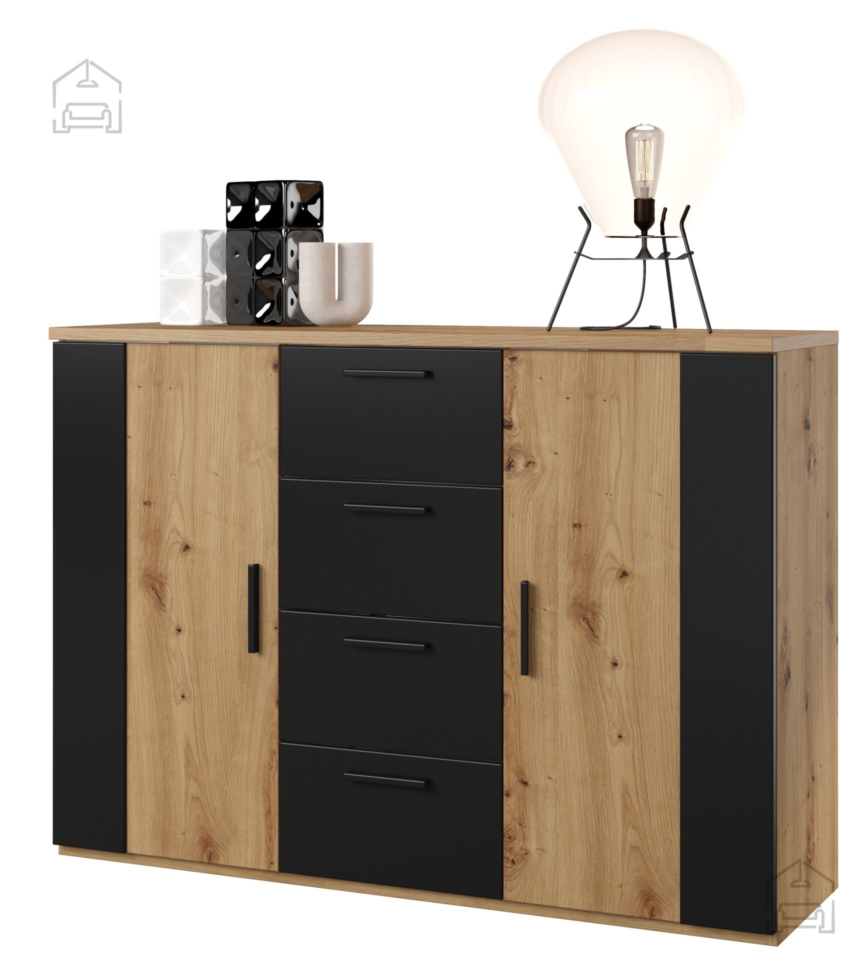 Wir präsentieren Ihnen die Kommode Sigma – ein kunstvoll designtes Möbelstück, das Eleganz und Funktionalität vereint. Diese beeindruckende Kommode in der Kombination aus Artisan-Eiche und edlem Schwarz verleiht Ihrem Zuhause einen modernen und zugleich zeitlosen Charakter. Stolz gefertigt in der Helvetia Meble Fabrik in Polen, ist die Kommode Sigma nicht nur optisch ansprechend, sondern auch langlebig und praktisch – eine ideale Wahl für jedes Zuhause.