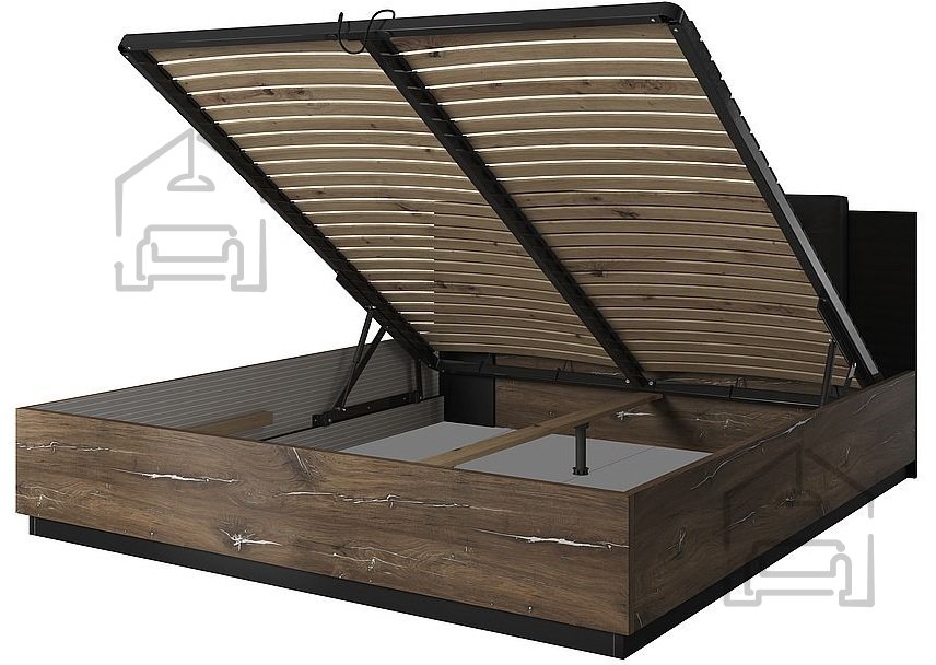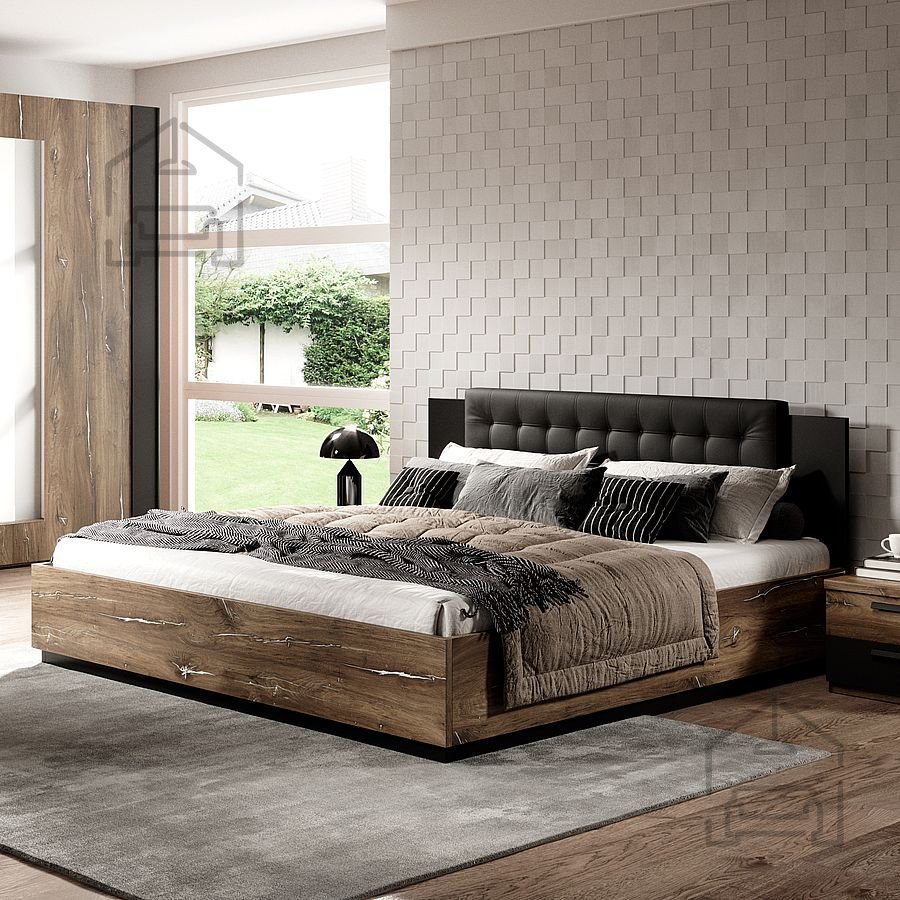 Durch die Verwendung laminierter Spanplatten ist das Sigma-Bett nicht nur optisch ansprechend, sondern auch widerstandsfähig und pflegeleicht. Die Farbgebung in Flagstaff-Eiche und Stahloptik verleiht Ihrem Schlafzimmer eine elegante Note, die sich in verschiedenste Raumkonzepte einfügt.
