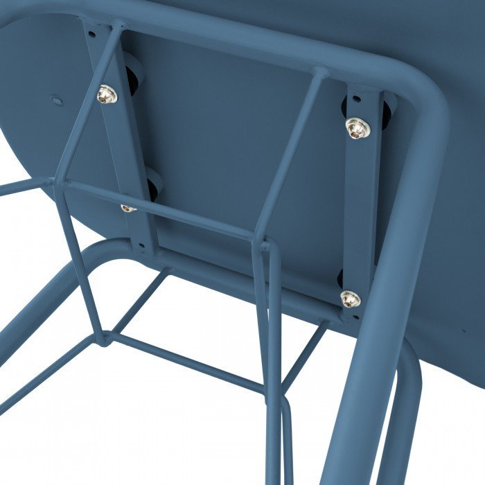 Stahl und Polypropylen: Mirpol Gartenstuhl Greta – blau.