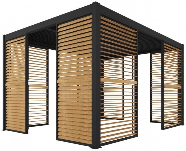 Stahlrahmen und Holzoptik: Verschiebbare Pergola-Lamellenwand mit Querträger 4 m – Mirpol.