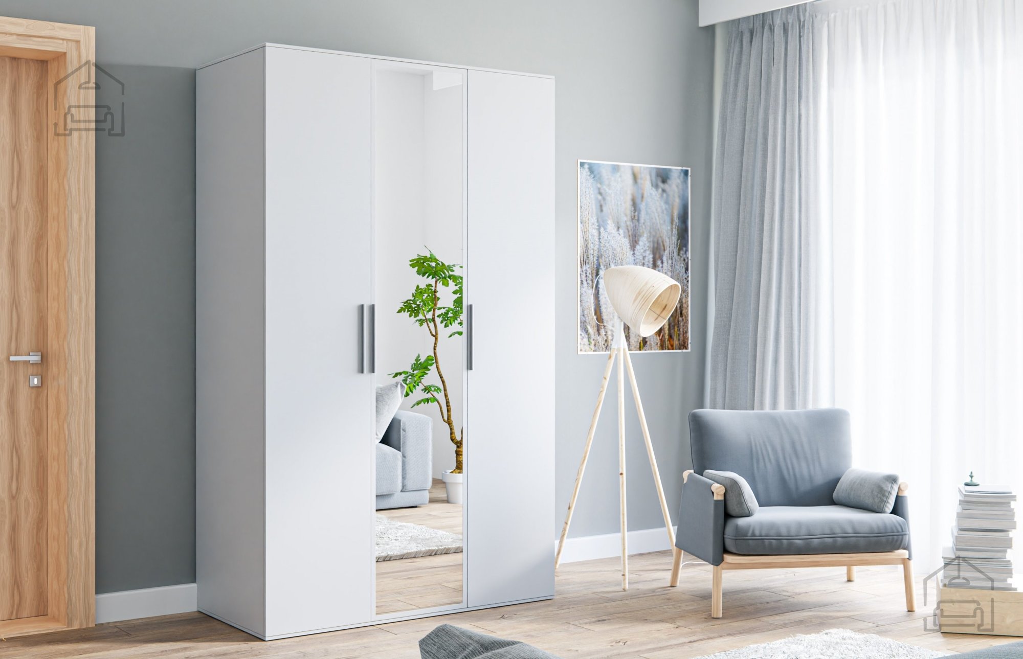 Spiegel: An der Innenseite der mittleren Tür befindet sich ein Spiegel, mit dem Sie Ihr Outfit überprüfen können und der gleichzeitig den Raum optisch vergrößert.