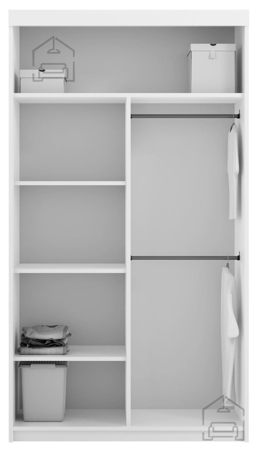 Der Kleiderschrank mit Schiebetüren Marika 120 ist ein modernes Möbelstück, das Funktionalität, hochwertige Verarbeitung und ein ansprechendes Design verbindet. Er wurde so konzipiert, dass er sich sowohl in kleinere als auch größere Schlafzimmer, Vorzimmer oder Ankleideräume perfekt einfügt. Mit den Maßen 120x62x216 cm bietet er eine ausgewogene Balance zwischen Stauraum und kompakter Größe – ideal auch für Wohnungen mit begrenzter Fläche. Gefertigt wird er in der renommierten Fabrik Arkos meble in Polen, wo besonderer Wert auf präzise Oberflächenbearbeitung und langlebige Materialien gelegt wird.