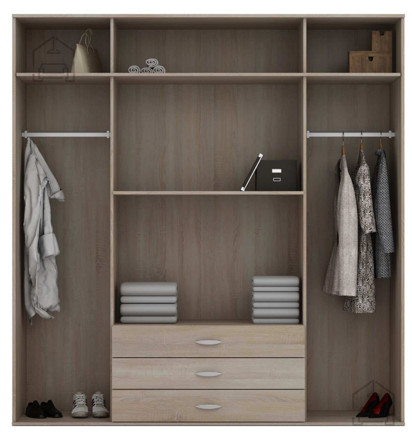 Schubladen: Praktisch gestaltete Schubladen ermöglichen eine übersichtliche Aufbewahrung von Kleidung und persönlichen Gegenständen.