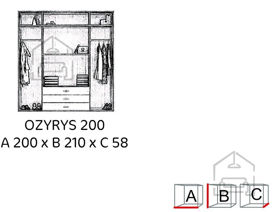Der Kleiderschrank Ozyrys vereint Ästhetik und Funktionalität. Mit seiner besonderen Form, den dezenten Farben und den durchdachten Details wird er zum Blickfang in Ihrem Raum. Gleichzeitig bietet er ausreichend Stauraum für Kleidung und andere Dinge – ideal für Ihr Schlafzimmer oder einen anderen Wohnbereich.