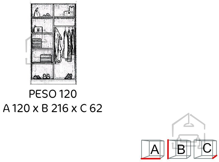 Der Kleiderschrank Peso ist ein funktionelles Möbelstück, das praktischen Nutzen mit modernem Design verbindet und Ihnen das Ordnen und den Zugriff auf Ihre Kleidung erleichtert.