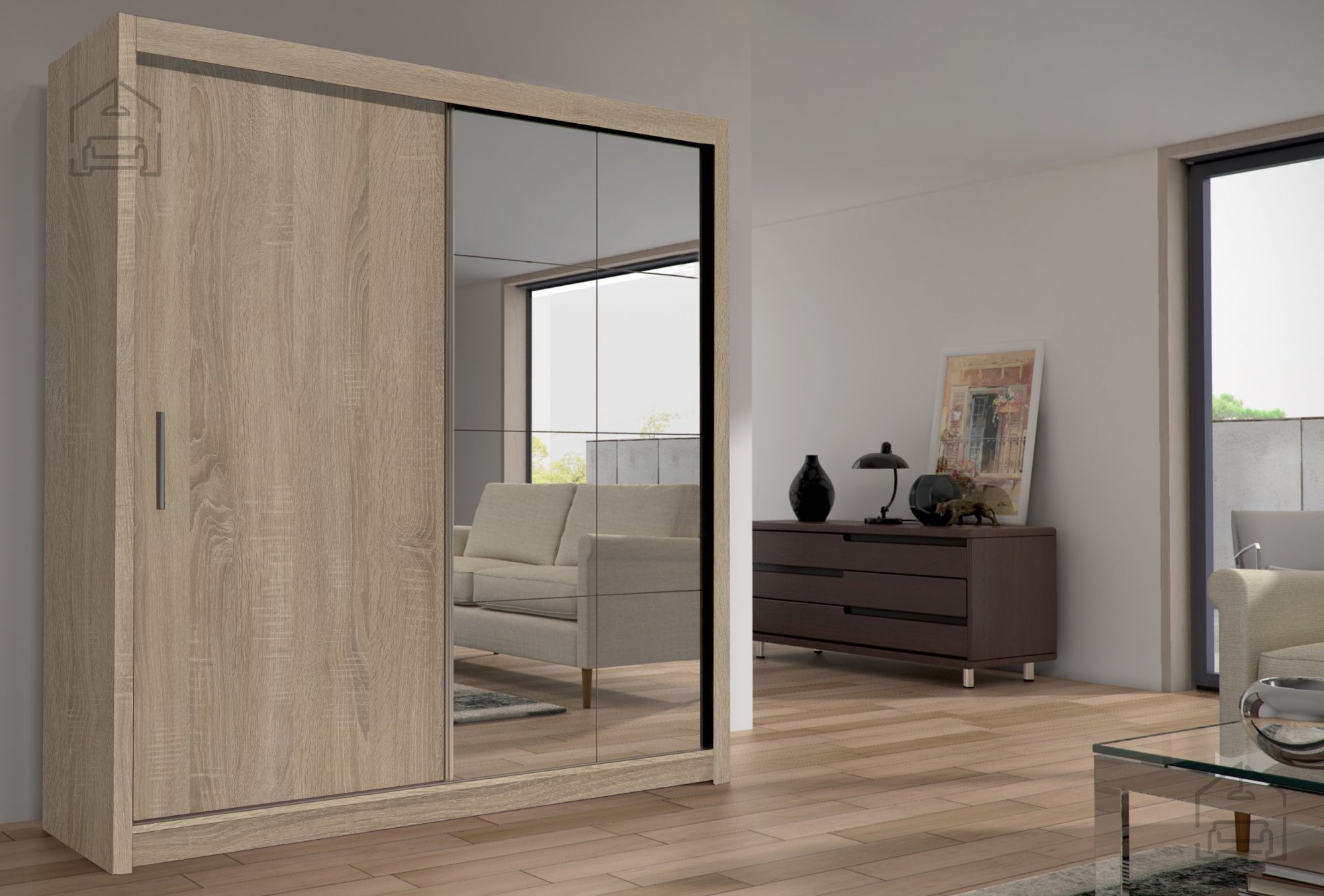 Der Kleiderschrank Peso 200 ist ein funktionelles Möbelstück, das modernes Design mit praktischer Handhabung verbindet und Ihnen das Ordnen und den Zugriff auf Ihre Kleidung erleichtert.