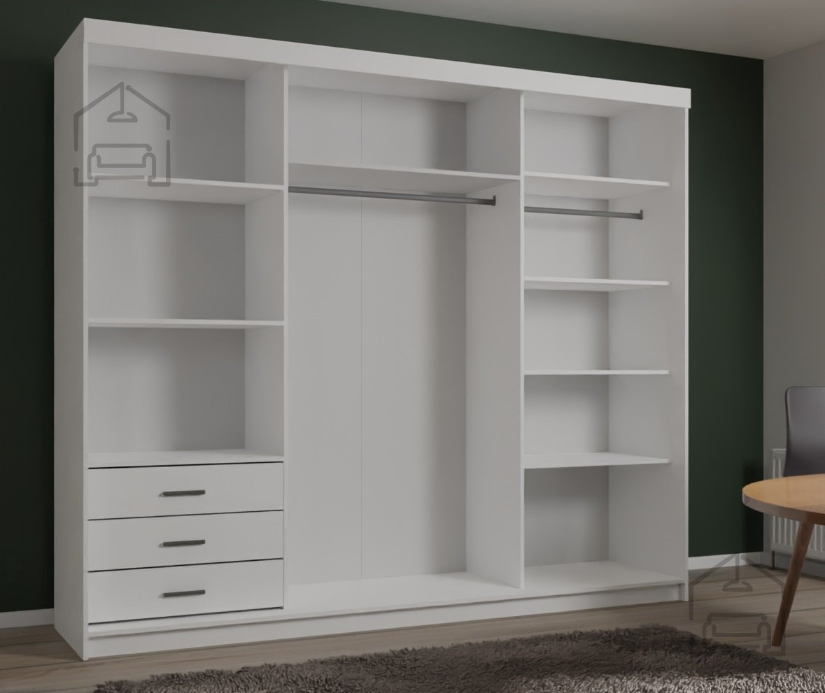 Der Kleiderschrank mit Schiebetüren Pesto 250 vereint Eleganz und Funktionalität – die ideale Lösung für Ihr Schlafzimmer.