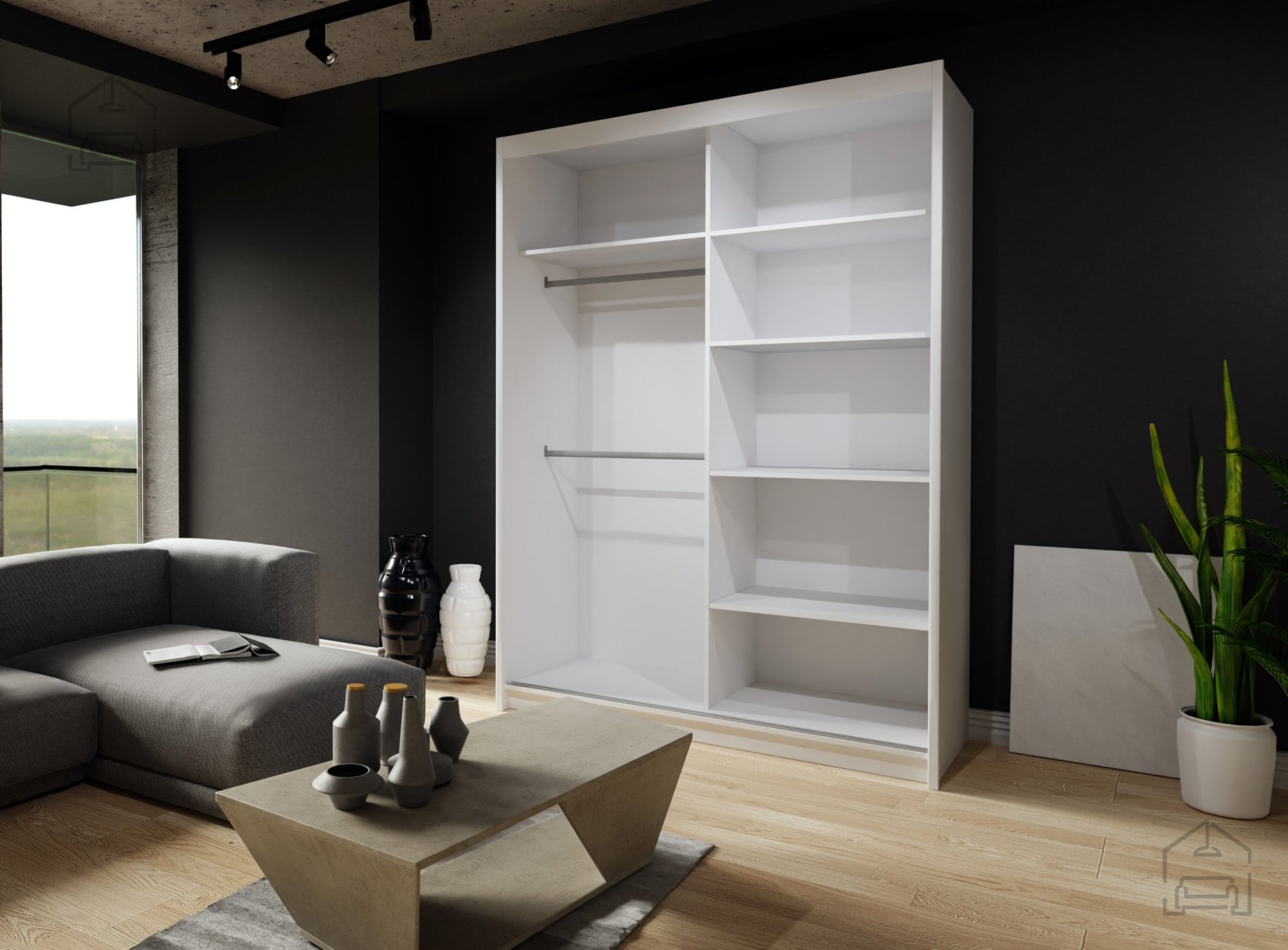 Dieser Kleiderschrank fügt sich sowohl optisch als auch funktional perfekt in Ihr Zuhause ein und sorgt für Ordnung sowie ein modernes Ambiente.