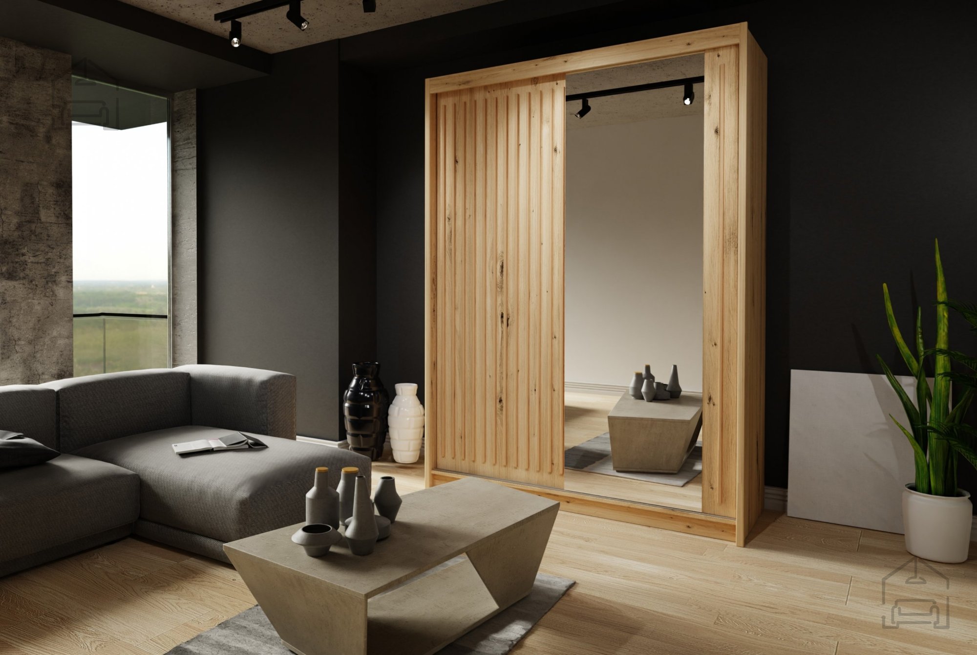 Spiegel: Ein integrierter Spiegel vergrößert den Raum optisch und ist zugleich ein nützliches Detail beim Ankleiden.