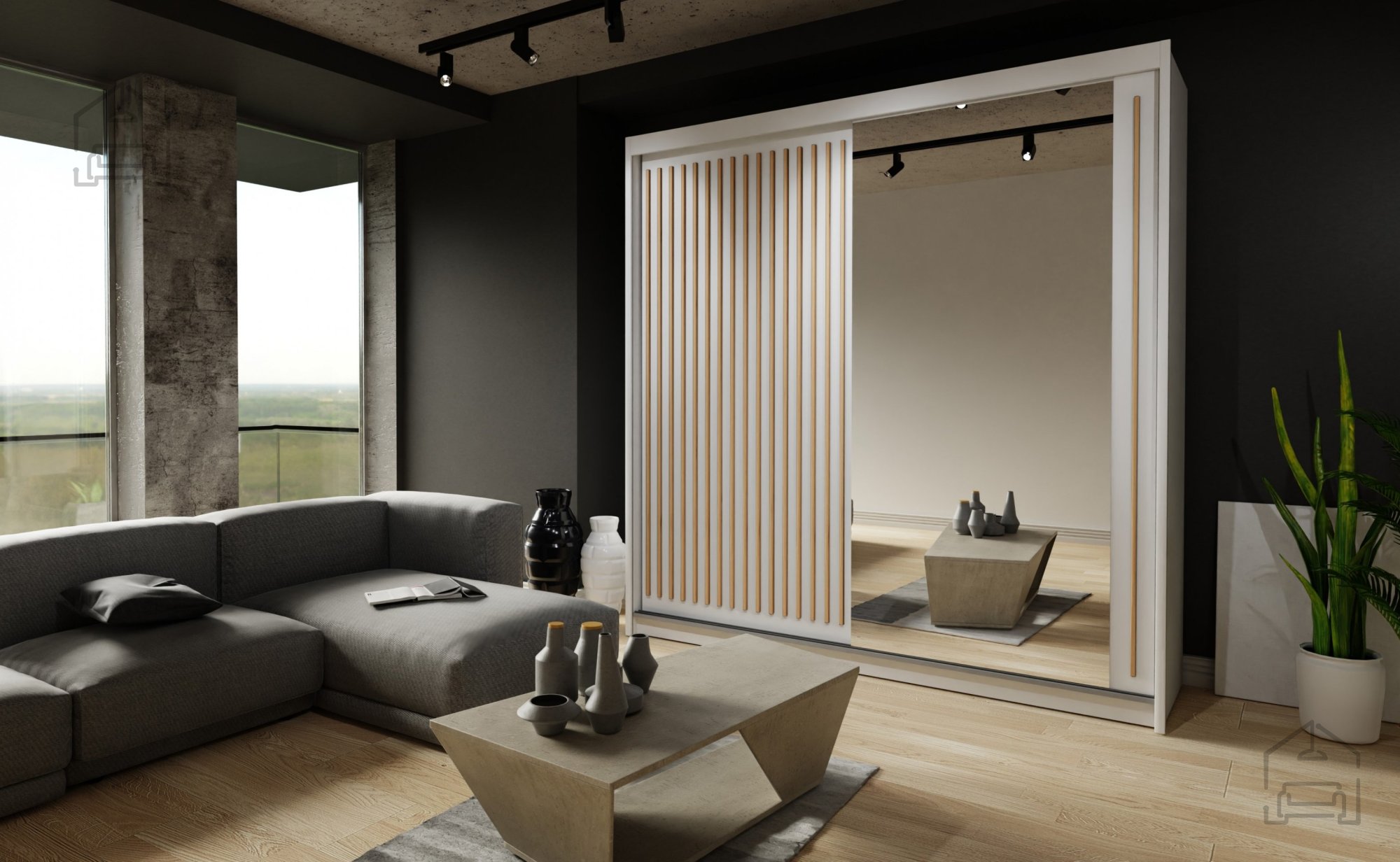Dieser Kleiderschrank fügt sich sowohl optisch als auch funktional harmonisch in Ihr Zuhause ein und sorgt für Ordnung sowie ein modernes Ambiente.