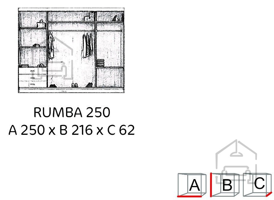 Der Kleiderschrank mit Schiebetüren Rumba ist die perfekte Wahl für alle, die modernes, funktionales und hochwertiges Mobiliar suchen.