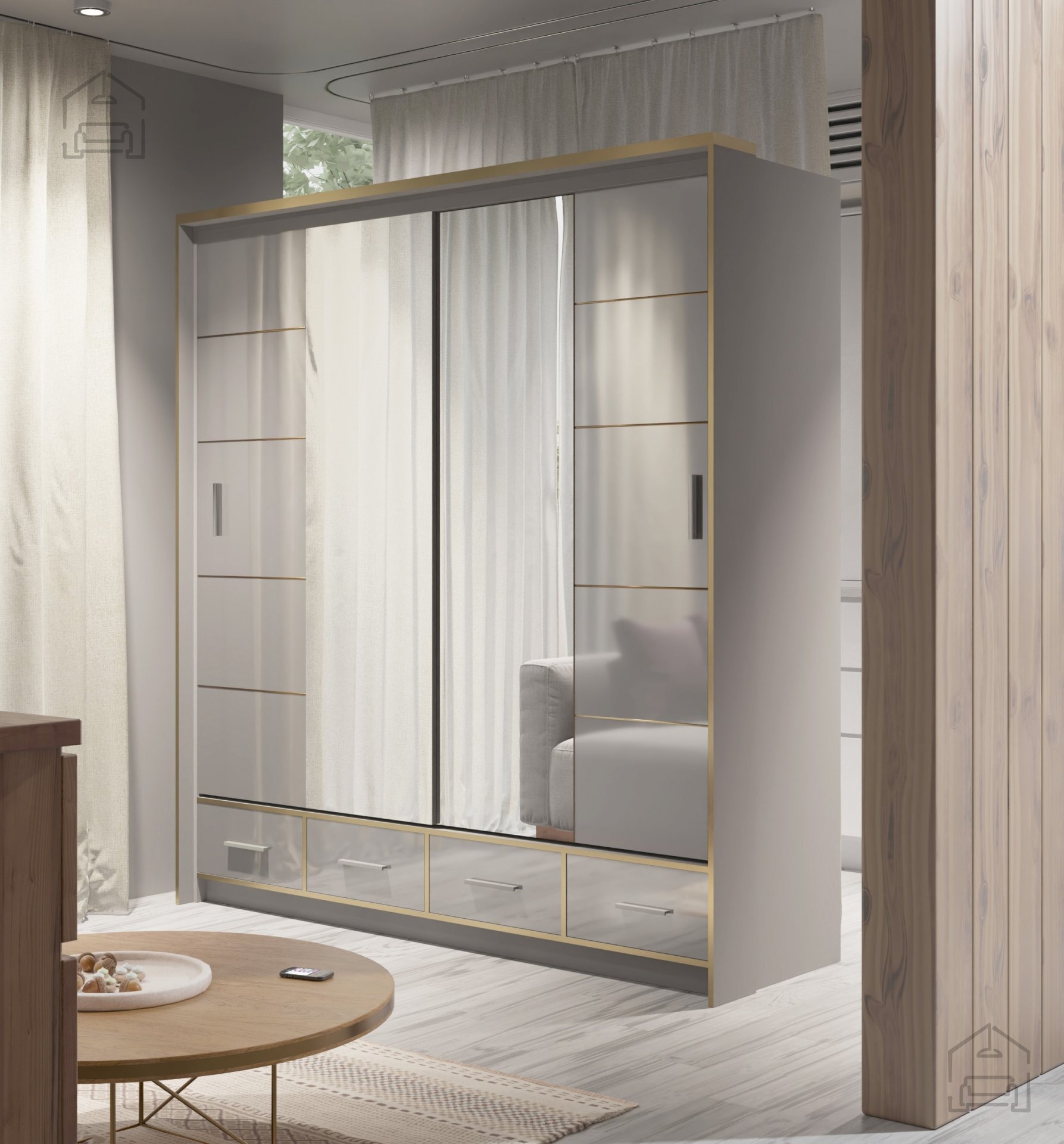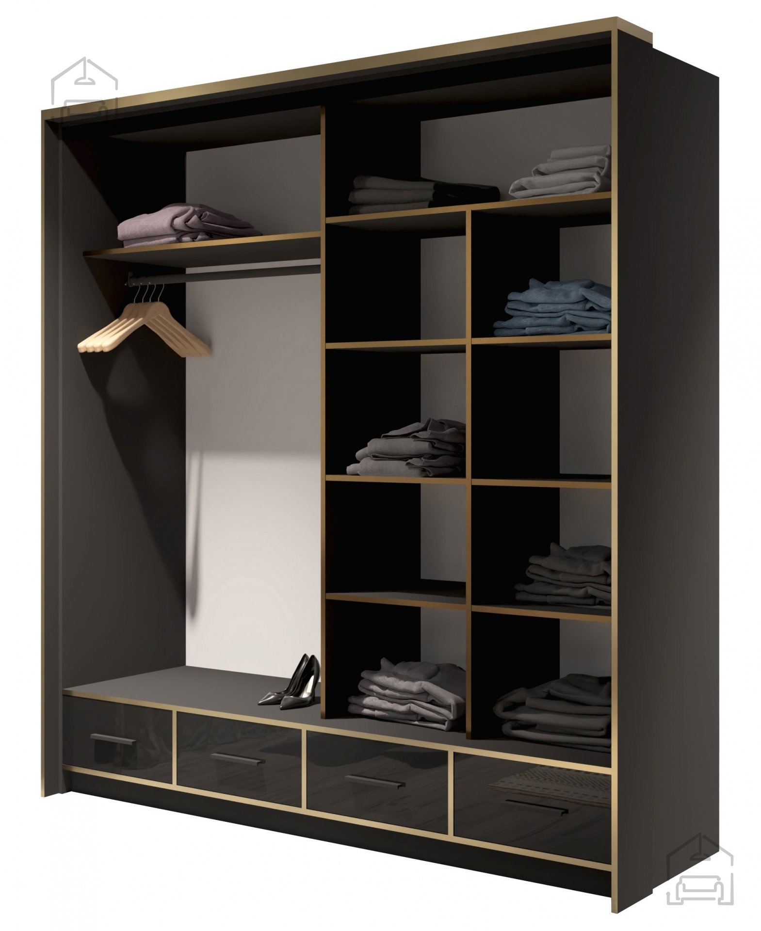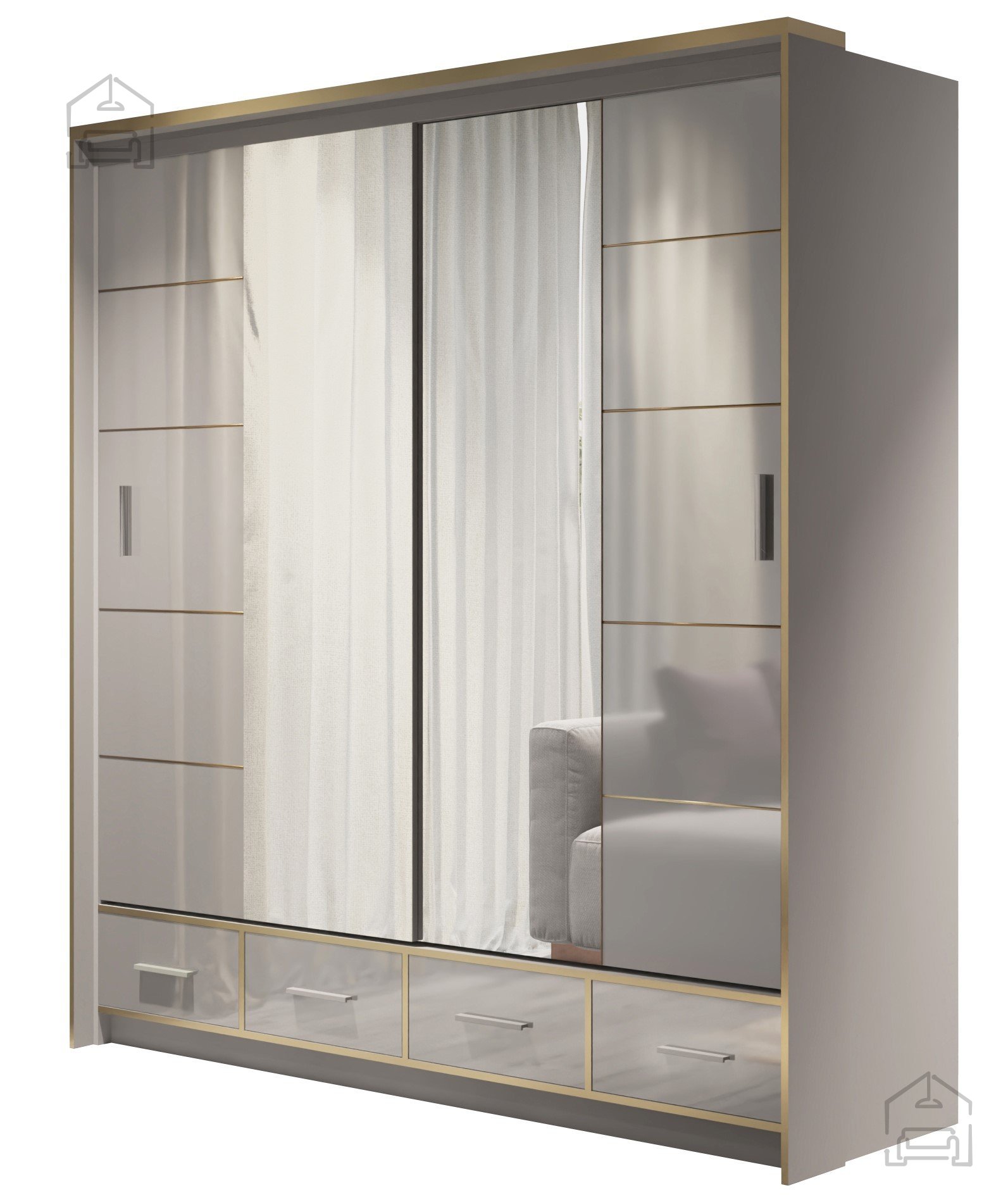 Der Kleiderschrank mit Schiebetüren Sevilla LED vereint ansprechendes Design mit hoher Funktionalität. Dieses Modell begeistert nicht nur durch seine elegante Optik, sondern bietet auch eine praktische Lösung zur Aufbewahrung Ihrer Kleidung.