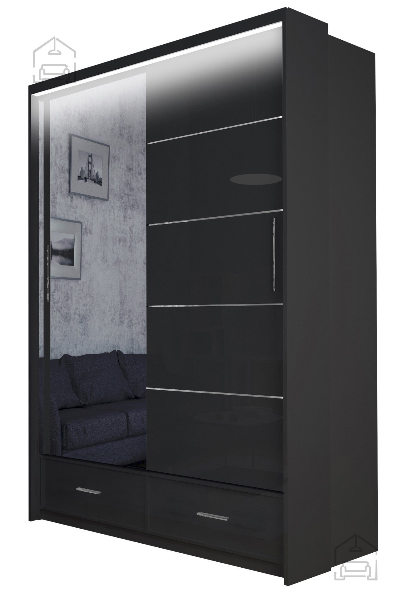 Der Kleiderschrank mit Schiebetüren Sycylia LED 150 ist ein attraktives und funktionelles Möbelstück, das Ihr Schlafzimmer oder einen anderen Raum wunderbar ergänzt.