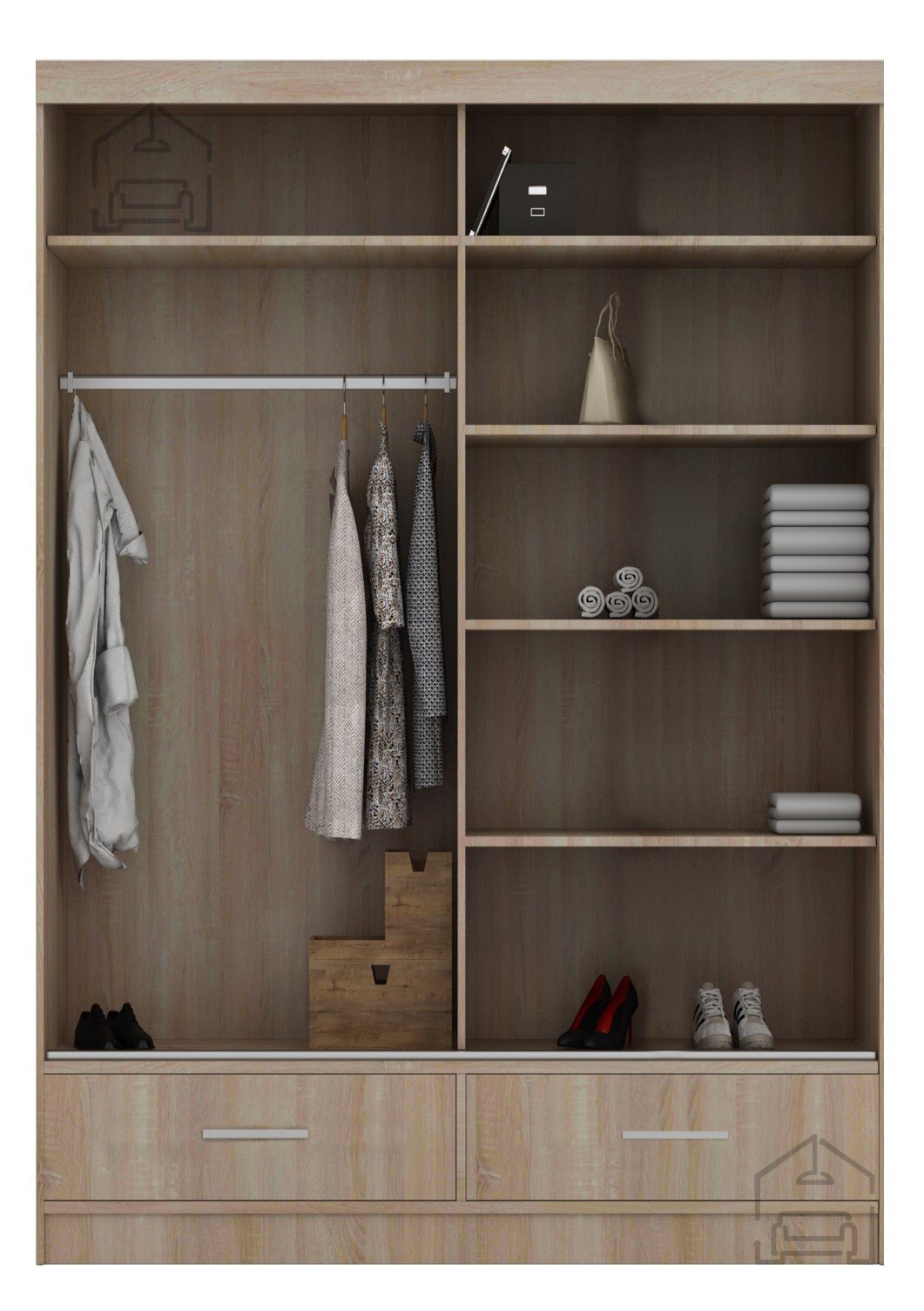 Schubladen: Vier Schubladen bieten übersichtlichen Stauraum für kleinere Gegenstände wie Accessoires, Unterwäsche oder persönliche Dinge.