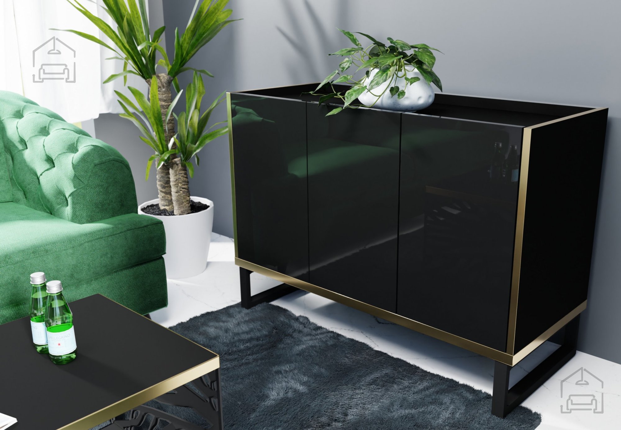 Die Kommode Henry 3F vereint auf gelungene Weise Eleganz und modernes Design und bringt so besonderen Stil in Ihr Zuhause. Gefertigt ist sie aus einer robusten, laminierten Platte in edlem Schwarzglanz, was ihr ein ausgesprochen ansprechendes Erscheinungsbild verleiht.