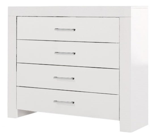 Die Kommode Figaro Bis in Weiß Hochglanz ist ein elegantes und zugleich praktisches Möbelstück mit vier geräumigen Laden. Dank ihrer glänzenden Oberfläche und des hochwertigen Materials ist sie eine ästhetische wie auch funktionale Bereicherung für Ihr Zuhause. Hier die wichtigsten Merkmale dieser Kommode: