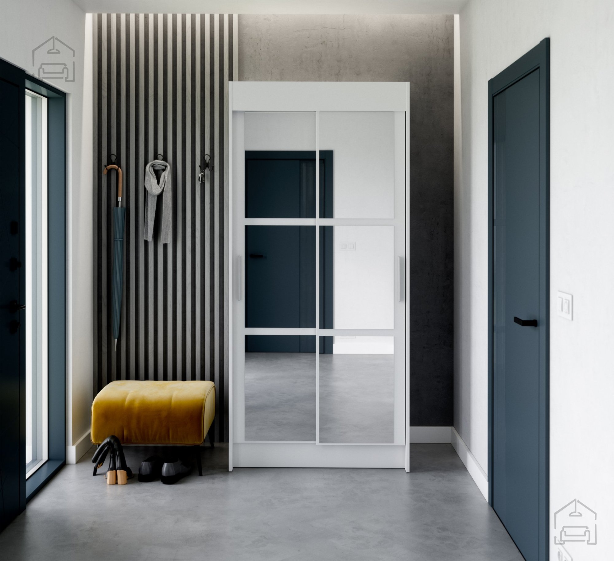 Ein Schrank mit Schiebetüren ist der perfekte Kompromiss zwischen Stil und Alltagstauglichkeit. Das Schiebesystem ermöglicht ein bequemes Öffnen, ohne zusätzlichen Platz vor dem Schrank zu benötigen – besonders praktisch in kleineren Wohnungen oder schmalen Fluren. Der große Spiegel an der Tür bietet nicht nur die Möglichkeit, das Outfit vor dem Verlassen des Hauses zu prüfen, sondern lässt den Raum auch heller und größer wirken. Eine ideale Lösung für alle, die Ästhetik und Funktion gerne in einem Möbelstück vereinen.