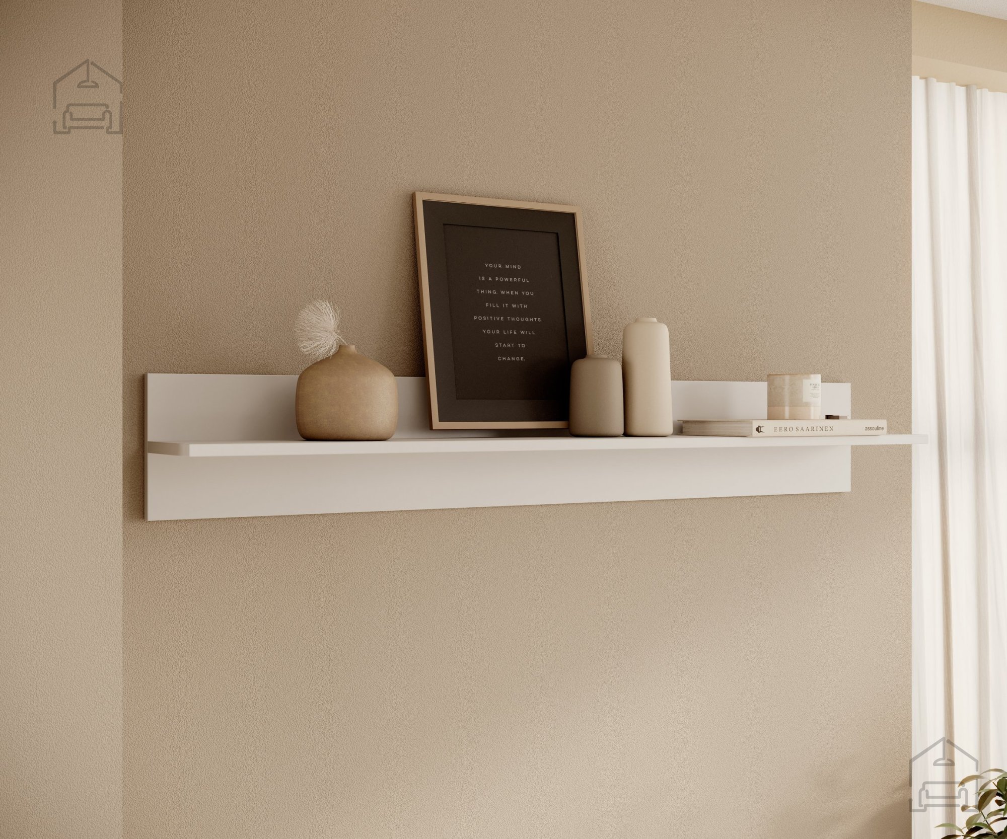 Wenn Sie nach einer perfekten Lösung für ein ordentliches, modernes und stilvolles Zuhause suchen, ist dieses Wandregal die ideale Wahl. Es wurde mit Blick auf Funktionalität, Schlichtheit und Eleganz entworfen und fügt sich harmonisch in jeden Einrichtungsstil ein. Mit seinen kompakten Maßen von 130x20x20 cm bietet es ausreichend Platz zum Aufbewahren oder Präsentieren Ihrer Lieblingsstücke, ohne viel Raum einzunehmen. Durch das minimalistische Design lässt es sich mühelos mit anderen Möbeln kombinieren und bleibt dennoch ein dezenter Blickfang im Raum.