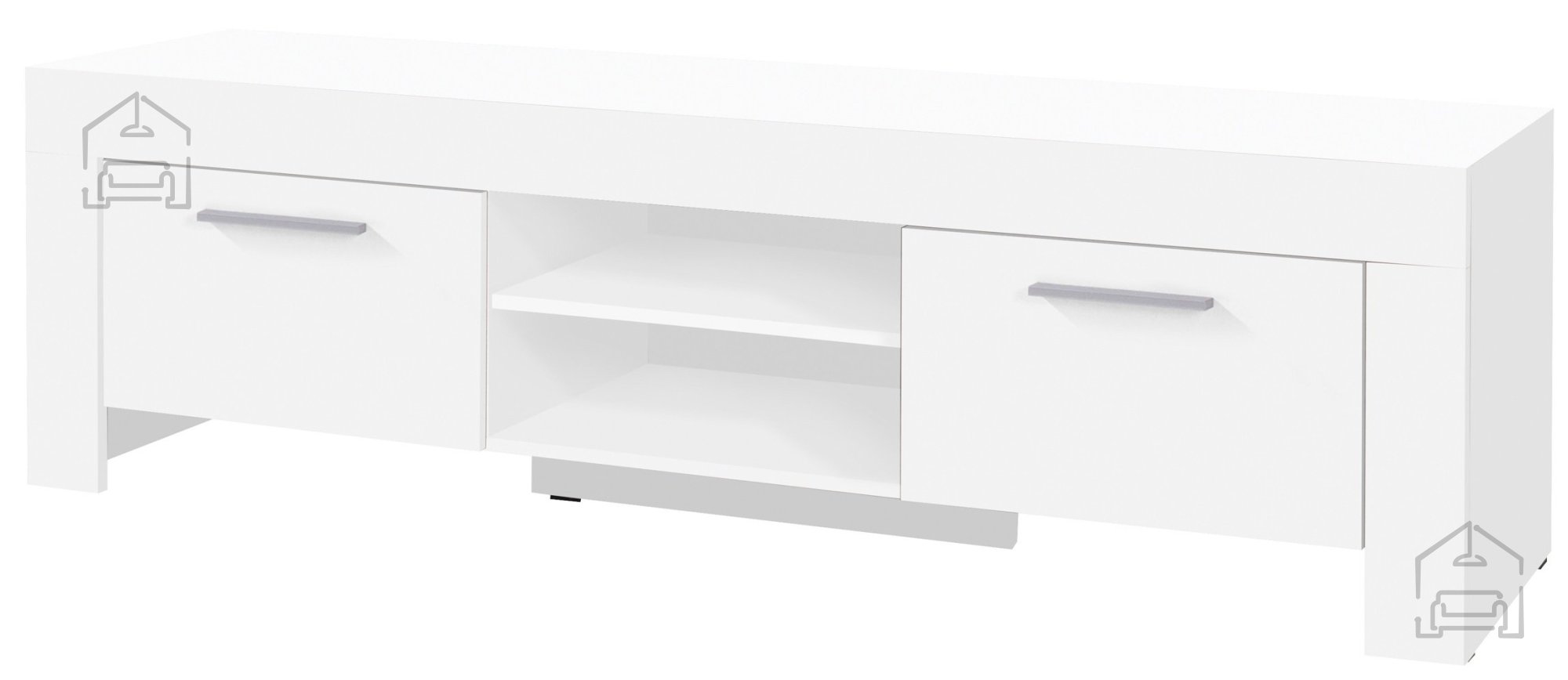 Schaffen Sie die perfekte Balance zwischen Ästhetik und Funktionalität mit diesem eleganten TV-Lowboard, das zum Mittelpunkt Ihres Wohnzimmers wird. Mit seiner edlen weißen Farbe und den klaren Linien fügt es sich harmonisch in verschiedenste Einrichtungsstile ein – von minimalistisch über skandinavisch bis modern. Gefertigt aus einer hochwertigen laminierten Platte mit 16 mm Stärke überzeugt das Möbelstück durch Stabilität, Langlebigkeit und eine lange Lebensdauer. Die präzise Verarbeitung in der renommierten Fabrik ADRK in Polen steht für höchste Qualitäts- und Zuverlässigkeitsstandards.