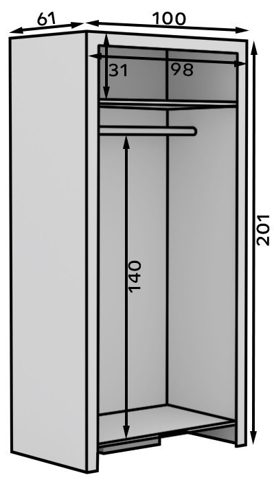 Der Schrank besteht aus einer 16 mm starken laminierten Platte, die Stabilität und Langlebigkeit gewährleistet. Die laminierte Oberfläche ist widerstandsfähig gegen Kratzer, Feuchtigkeit und alltägliche Abnutzung, sodass der Schrank lange wie neu aussieht. Innen befindet sich eine praktische Kleiderstange sowie ein geräumiges Fach für Accessoires, Bettwäsche oder Kisten mit Saisonkleidung. Diese durchdachte Aufteilung sorgt dafür, dass alles seinen Platz hat und Ihr Zuhause stets ordentlich bleibt – ganz ohne Aufwand.
