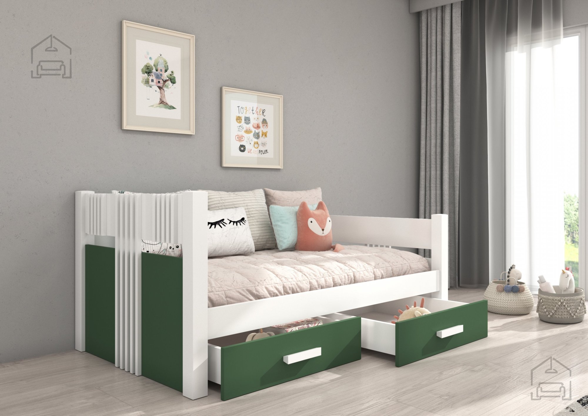 Ein Bett ist weit mehr als nur ein Möbelstück – es bildet das Herzstück des Kinderzimmers, wo Ihr Kind ruht, träumt und neue Energie sammelt. Durch die Kombination aus praktischen Schubladen und einem schlichten Design sorgt das Kinderbett Bibi für Ordnung und bietet gleichzeitig einen gemütlichen Rückzugsort für erholsamen Schlaf. Mit der passenden Farbwahl können Sie das Zimmer verspielt, warm oder elegant gestalten – ganz nach dem Charakter Ihres Kindes und Ihrem Einrichtungsstil.