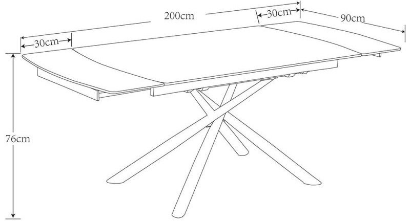 • Der Tisch ist mit zwei Einsätzen ausgestattet, die jeweils 30 cm breit sind und eine Verlängerung von 140 cm auf 200 cm ermöglichen.