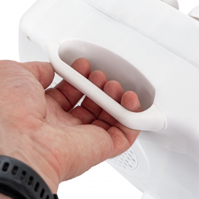 Der Mirpol HH-200A punktet durch seine einfache Handhabung und Zuverlässigkeit. Seine kompakte Bauweise ermöglicht es, ihn schnell dorthin zu stellen, wo er gebraucht wird. Ein integrierter Tragegriff sorgt für sicheres Transportieren – besonders praktisch, wenn das Gerät in verschiedenen Räumen verwendet wird. Zwei Leistungsstufen bieten wahlweise sanftes Heizen mit 1000 W oder kräftige Wärme mit 2000 W, wenn es einmal schneller gehen soll.