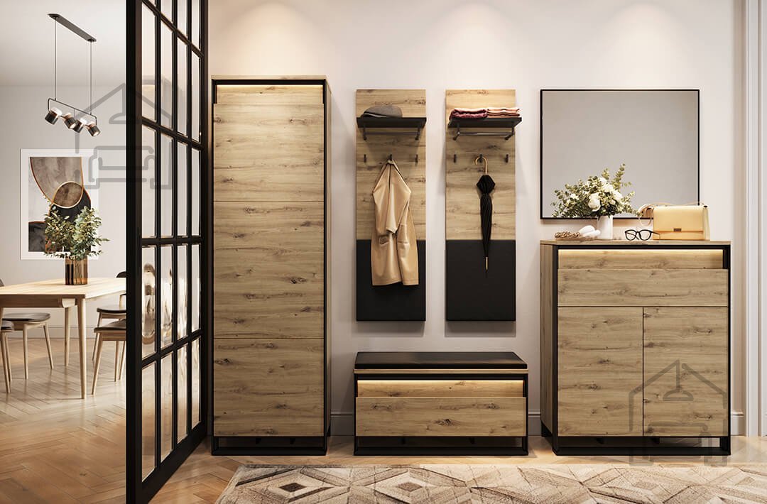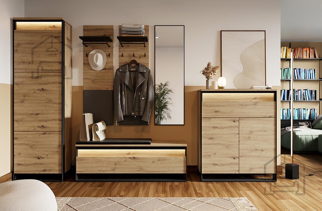 Praktischer Stauraum, geräumige Schubladen und ein Schrank mit Türen bieten viel Platz für Ihre Habseligkeiten. Diese Kollektion eignet sich perfekt auch für kleinere Eingangsbereiche.