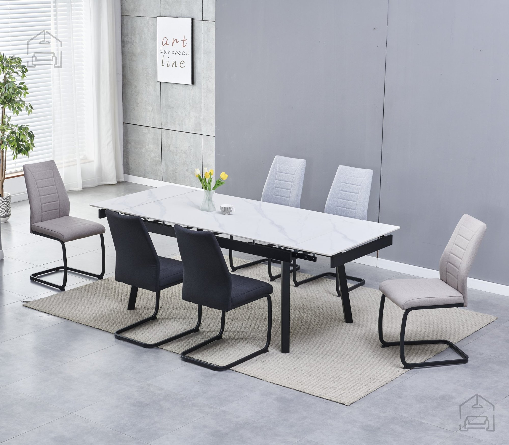 Der Esszimmerstuhl Emins ist so gestaltet, dass er sich leicht in verschiedene Innenräume integrieren lässt. Aufgrund seiner neutralen schwarzen Farbe lässt er sich leicht mit verschiedenen Farbpaletten und Möbelstilen kombinieren. Sie können ihn mit einem Holz- oder Glastisch für ein modernes Aussehen kombinieren oder ihn als Kontrast in einem traditioneller eingerichteten Raum verwenden.