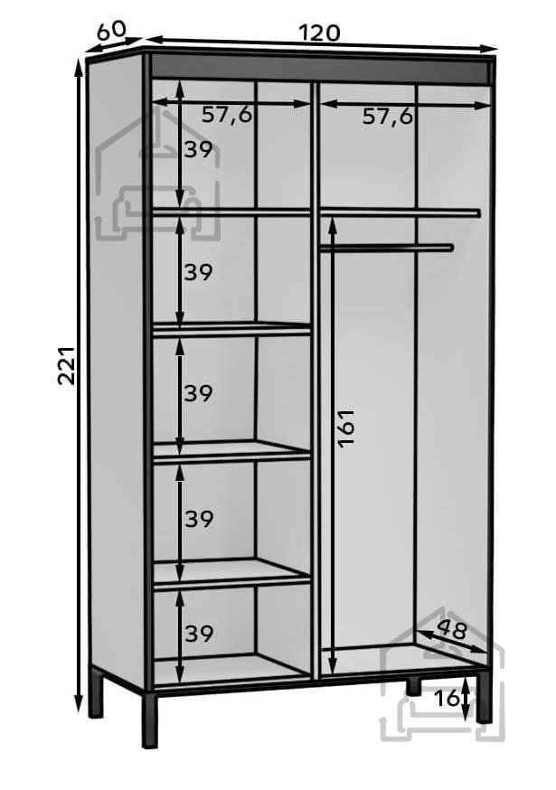 Eine der größten Stärken dieses Kleiderschranks ist sein großzügiges Platzangebot. Dank der durchdachten Innenaufteilung lassen sich Kleidung, Schuhe und Accessoires bequem verstauen. Regalböden und Kleiderstangen sind so angeordnet, dass sowohl saisonale als auch alltägliche Kleidungsstücke ihren Platz finden. Mit einer Höhe von 221 cm bietet der Schrank zudem ausreichend Raum für längere Kleidungsstücke wie Mäntel oder Kleider.