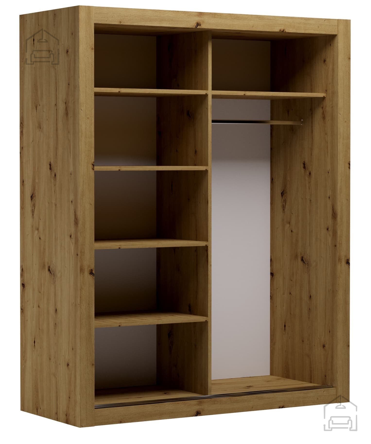 Neben seinem ansprechenden Aussehen punktet der Schrank auch mit durchdachter Funktionalität. Die Innenaufteilung ermöglicht eine übersichtliche Aufbewahrung verschiedenster Kleidungsstücke – von hängender Kleidung bis hin zu gefalteten Textilien. Dank der cleveren Organisation behalten Sie stets den Überblick und erleichtern sich die tägliche Auswahl Ihrer Outfits.