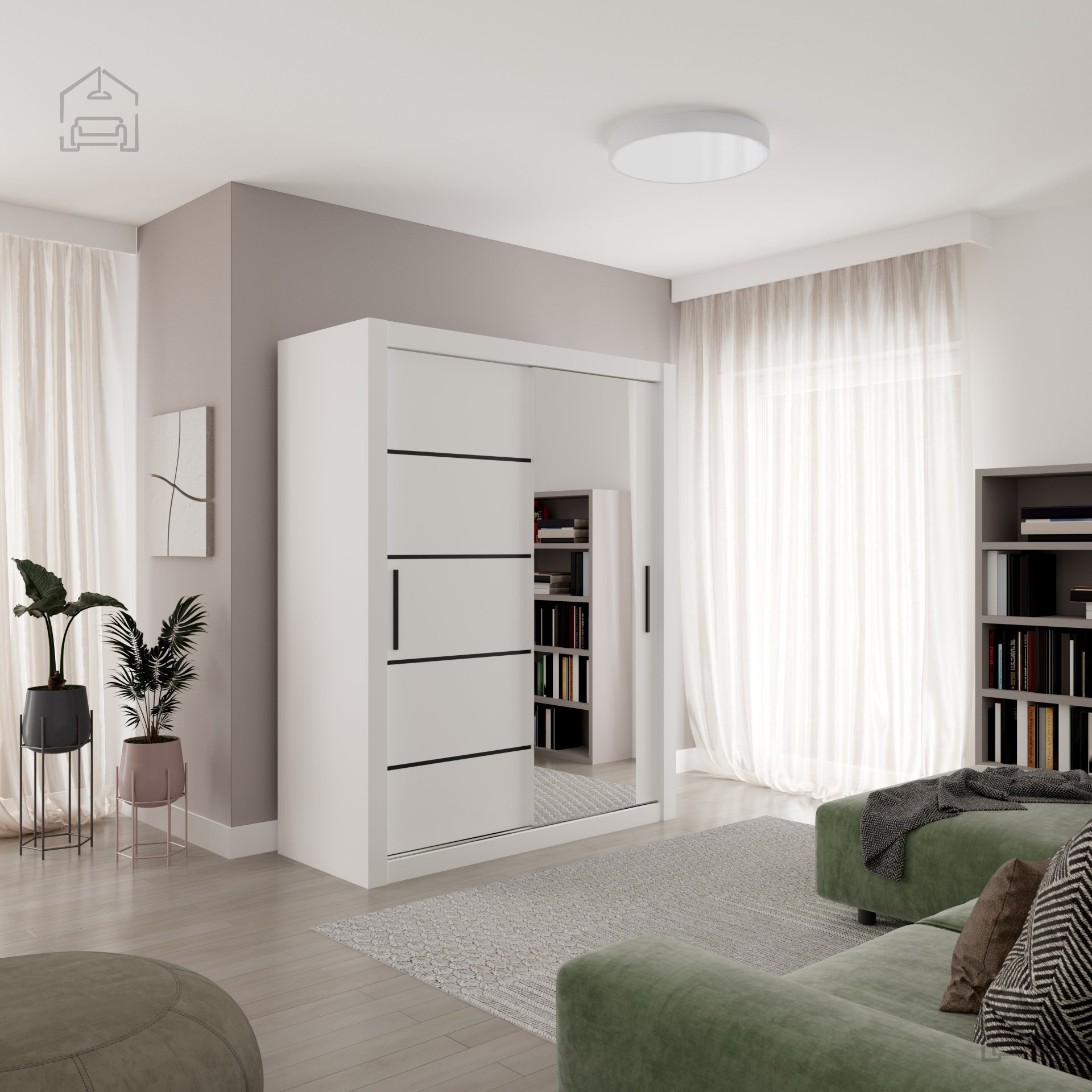 Die perfekte Verbindung von Funktionalität, modernem Design und hochwertiger Verarbeitung – das sind die Hauptmerkmale des Kleiderschranks Mox. Mit seinen Maßen von 160x64x200 cm bietet er großzügigen Stauraum, wirkt dabei aber dank seiner eleganten Form nicht wuchtig. Eine hervorragende Wahl für alle, die in ihrem Zuhause auf praktische Lösungen und ein stilvolles Erscheinungsbild Wert legen – egal ob im Schlafzimmer, Vorraum oder Ankleidezimmer.