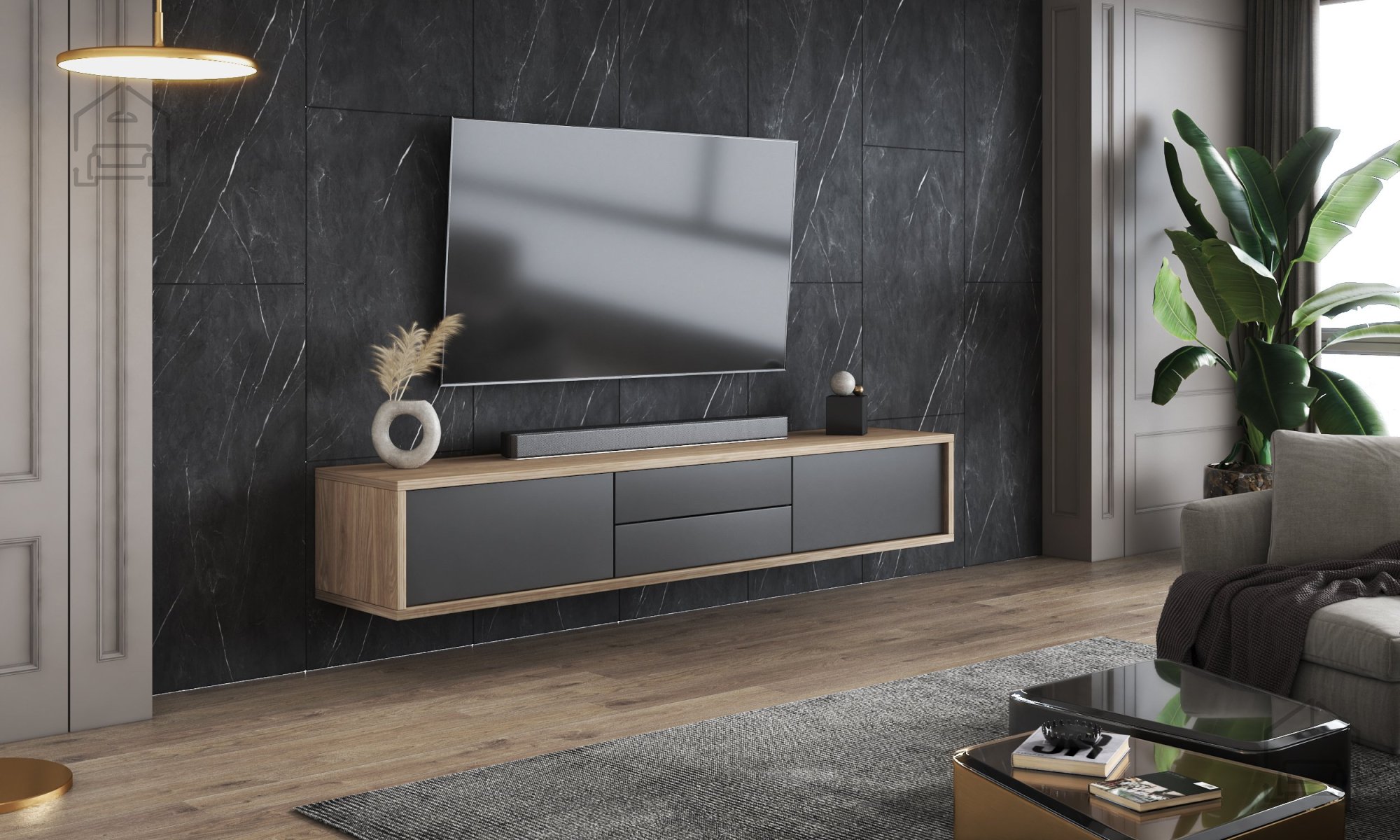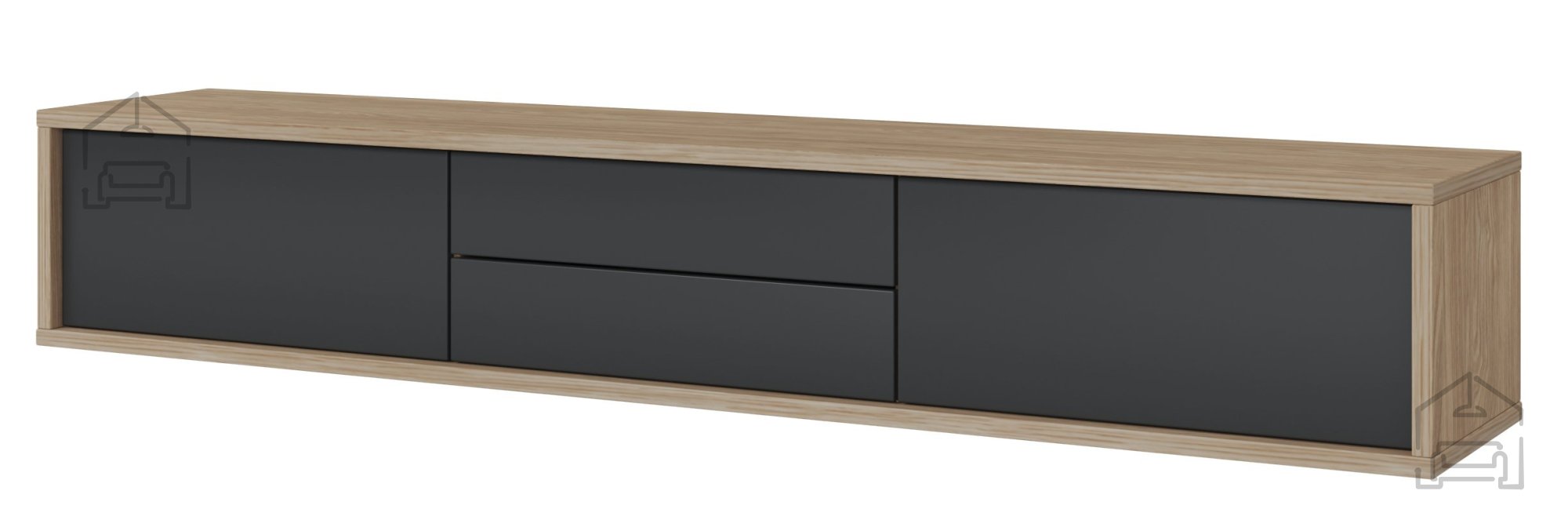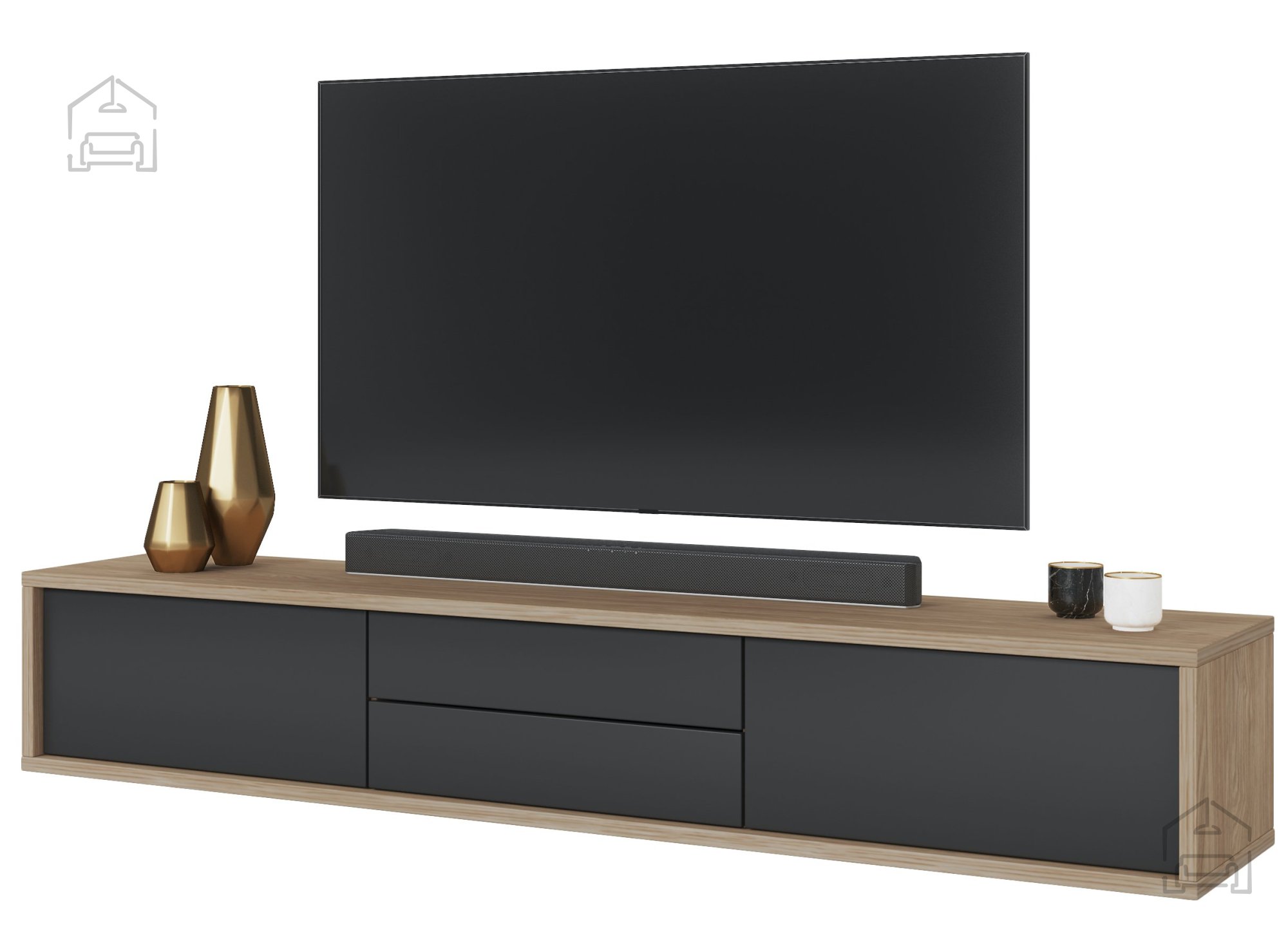 Wir präsentieren Ihnen ein hochwertiges Möbelstück, das Ihrem Zuhause einen Hauch von Eleganz und Modernität verleiht – die TV-Kommode Frida 2K2S in einer wunderschönen Kombination aus geölter Eiche und Anthrazit. Dieses Modell wurde für anspruchsvolle Kundinnen und Kunden entwickelt, die Wert auf Qualität, Ästhetik und Funktionalität legen. Mit ihren Maßen von 180x36x32 cm passt die Kommode perfekt in jedes moderne Wohnzimmer.