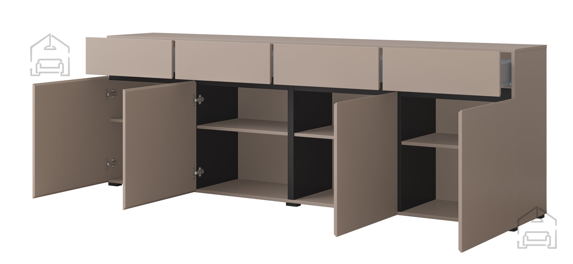 Die Kommode misst 225x40x78 cm und passt dadurch perfekt in unterschiedlichste Wohnbereiche. Ob im Wohnzimmer, Schlafzimmer oder im Flur – ihr elegantes Design zieht garantiert die Blicke auf sich. Gefertigt aus MDF, überzeugt sie durch Robustheit und Langlebigkeit. MDF ist bekannt für seine Feuchtigkeitsbeständigkeit und hohe Stabilität, sodass Ihre Kommode auch nach vielen Jahren ihren schönen Look behält.