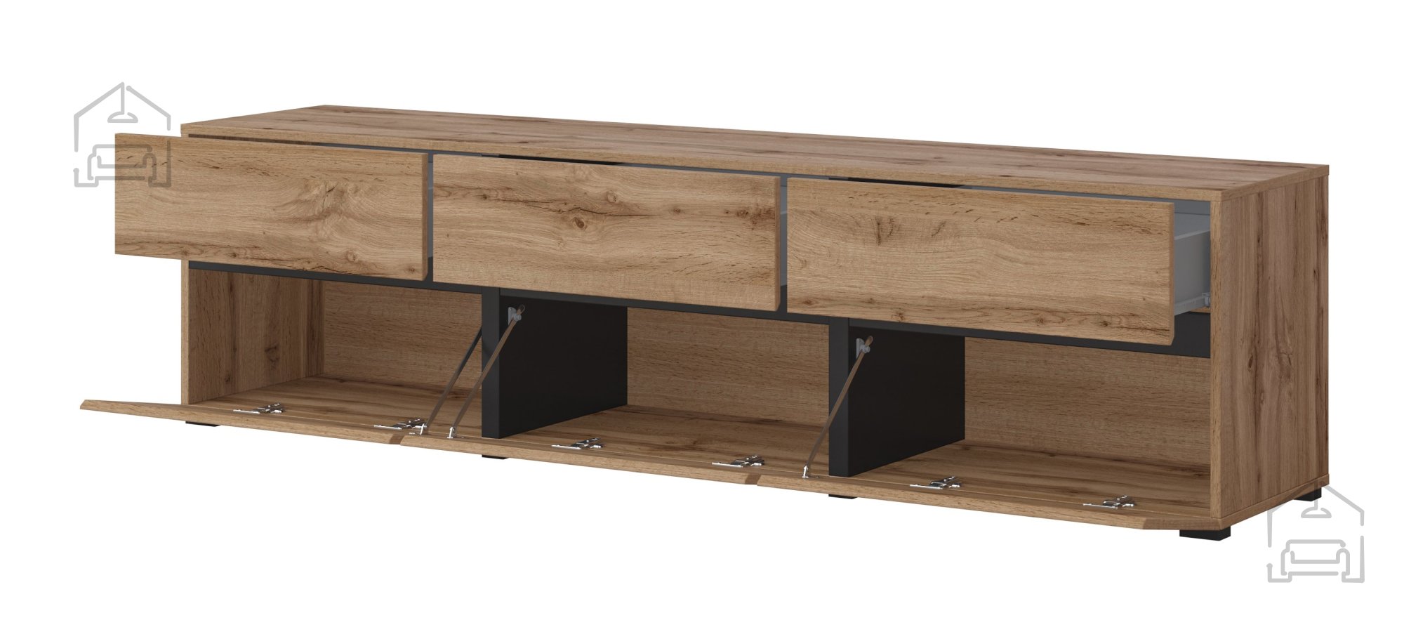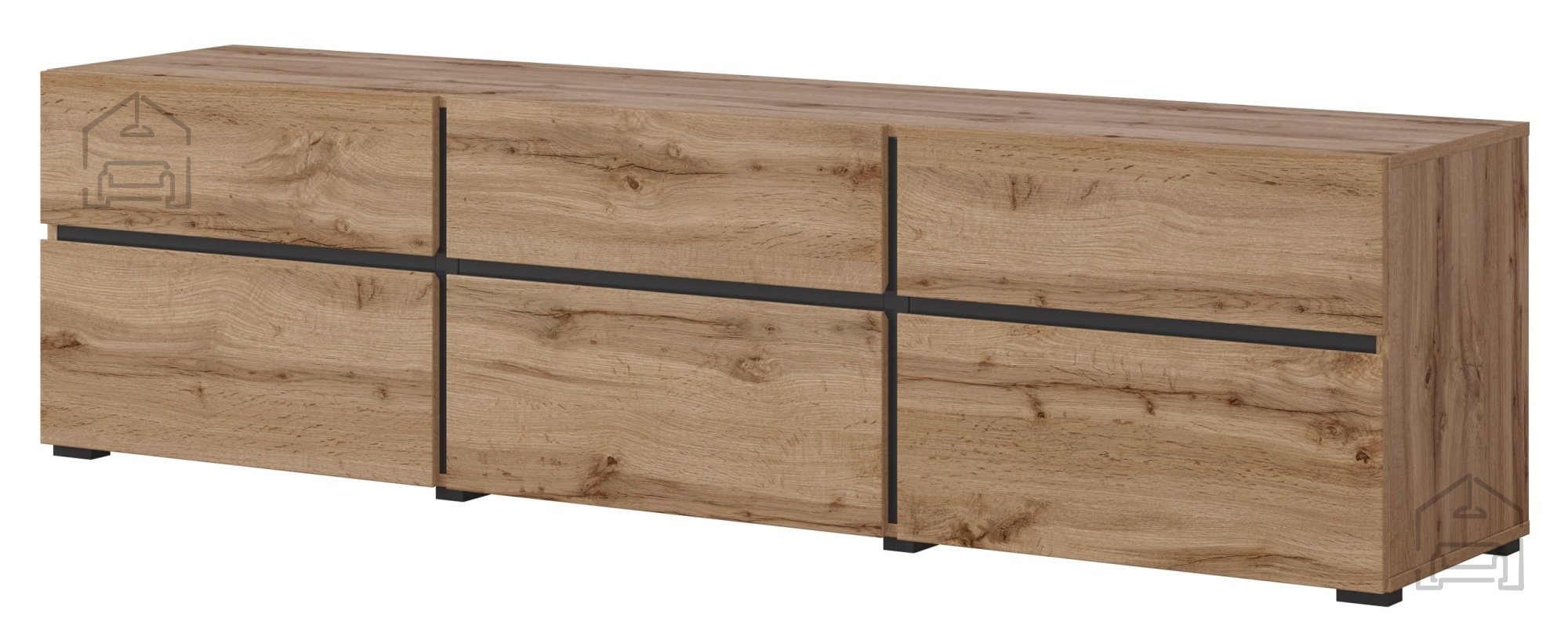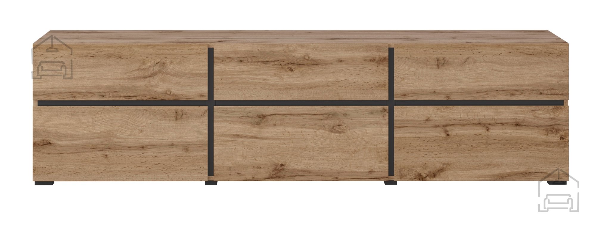 Wir präsentieren Ihnen die elegante und funktionale TV-Kommode Cross - 24N6MY41, die Ihrem Wohnzimmer einen Hauch von moderner Eleganz und praktischer Raffinesse verleiht. Mit ihren Maßen von 180x40x48 cm und dem zeitlosen Design in Votan-Eiche kombiniert mit Schwarz fügt sich dieses Möbelstück harmonisch in jedes Wohnambiente ein.