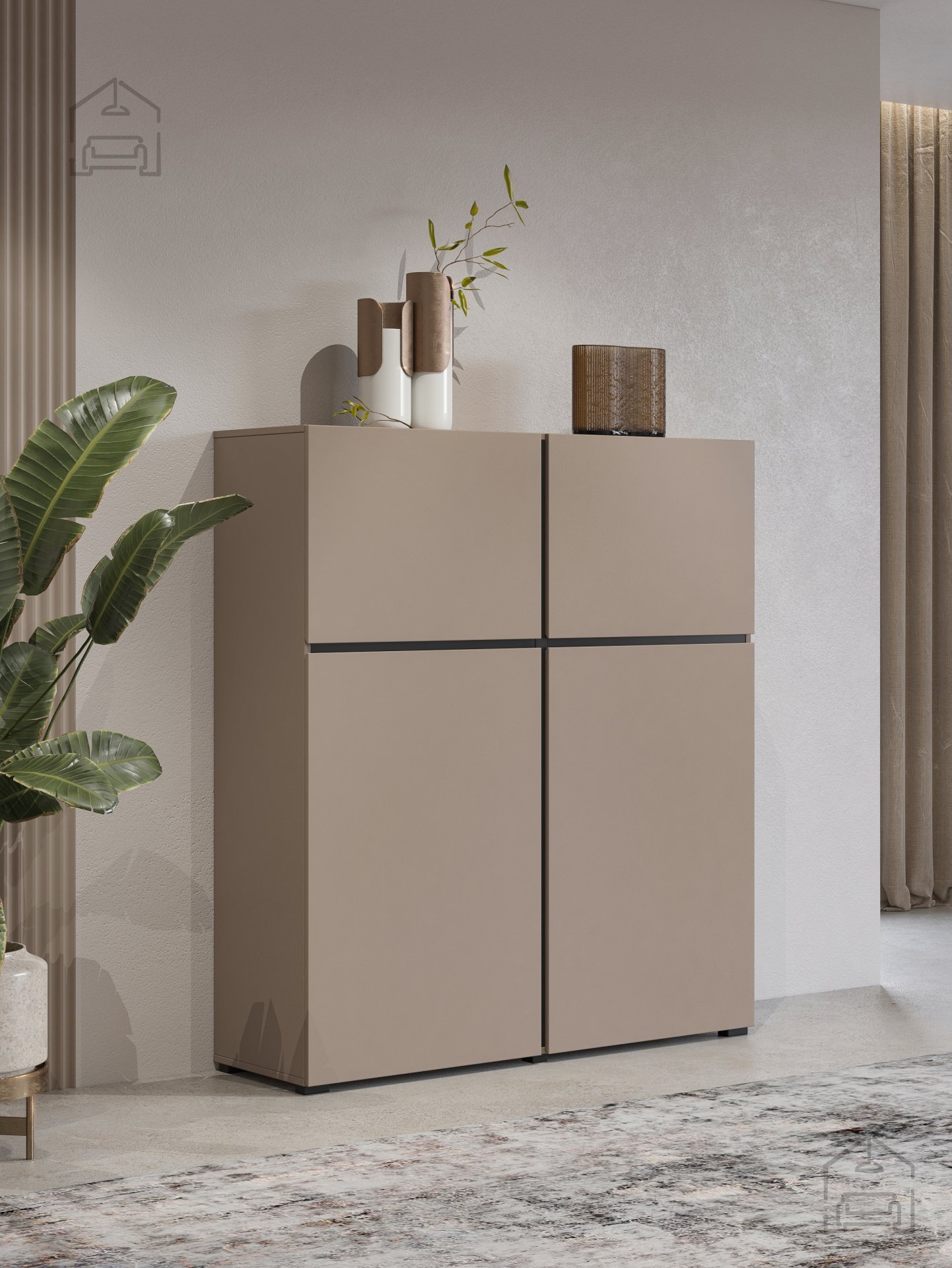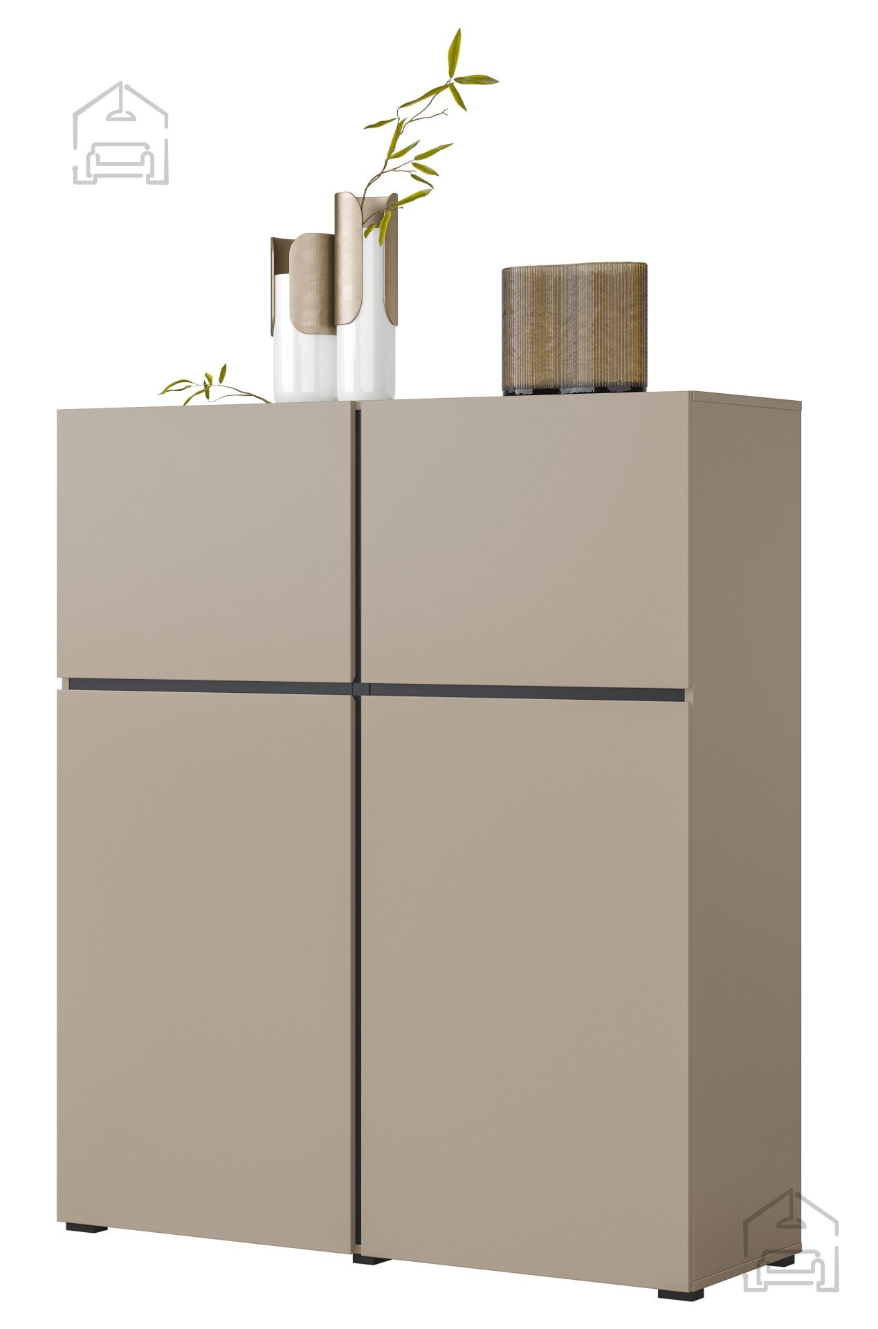 Die Farbvariante Cashmere fügt sich harmonisch in verschiedenste Einrichtungsstile ein und lässt sich mühelos mit Ihrer bestehenden Einrichtung kombinieren. Das Design der Kommode Cross wurde mit Fokus auf zeitgemäße Ästhetik entwickelt – es vereint minimalistisches Erscheinungsbild mit hoher Alltagstauglichkeit. Klare Linien und elegante Griffe sorgen für eine edle Ausstrahlung, während die vielseitige Form sowohl zu klassischen als auch modernen Wohnräumen passt.