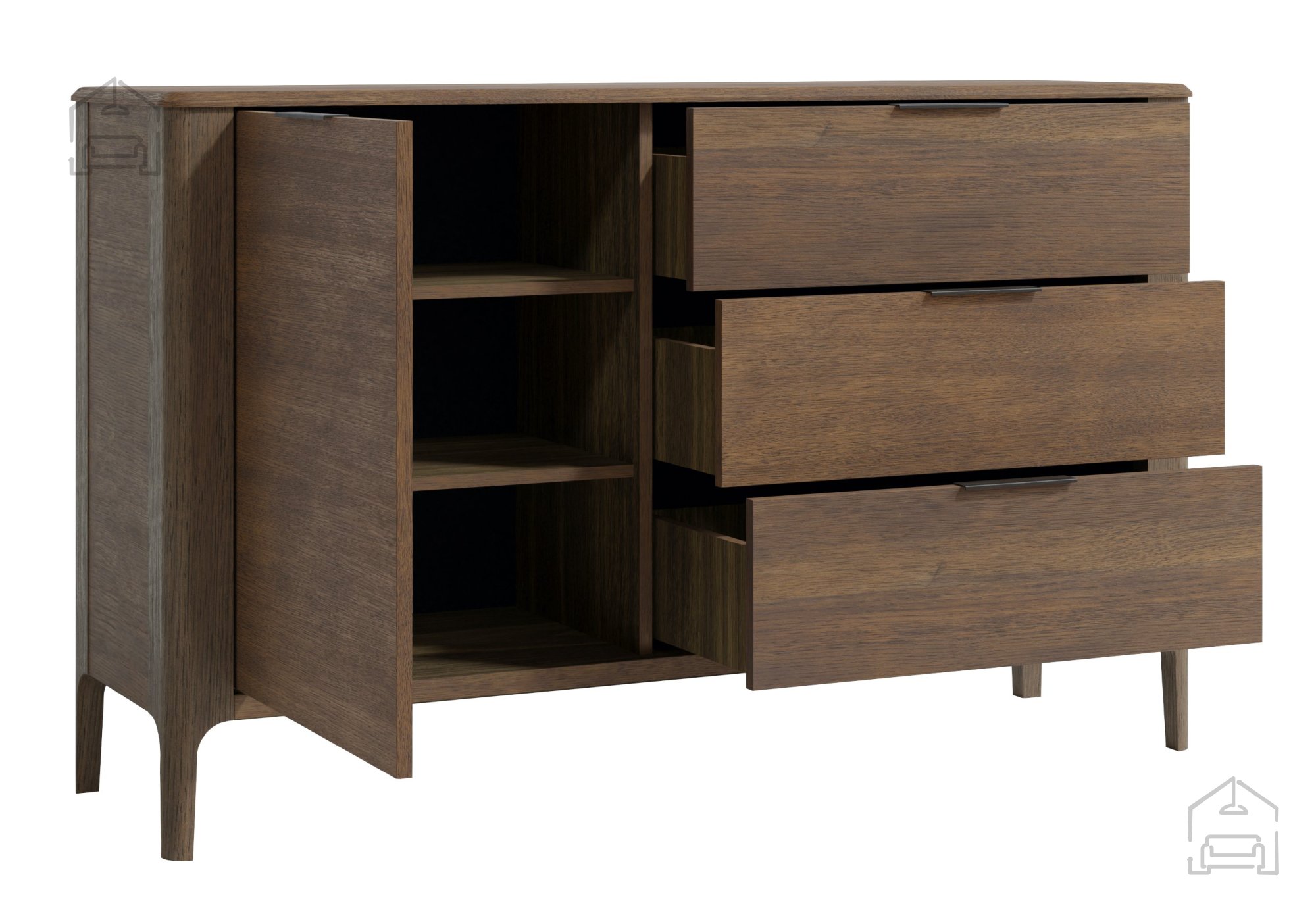 Die Kommode Malawi ist Teil einer breiteren Möbelserie für Wohn- und Essbereiche. Diese umfasst verschiedene Elemente, die sich harmonisch miteinander kombinieren lassen – von Vitrinen und TV-Schränken bis hin zu Couchtischen und Regalen. So kann der gesamte Raum einheitlich eingerichtet werden. Einige Stücke der Kollektion sind optional mit LED-Beleuchtung erhältlich, die gegen Aufpreis für stimmungsvolles Licht sorgt. Auch wenn die Kommode selbst keine Beleuchtung enthält, lässt sie sich hervorragend mit beleuchteten Elementen derselben Serie kombinieren, um ein modernes und warmes Ambiente zu schaffen.