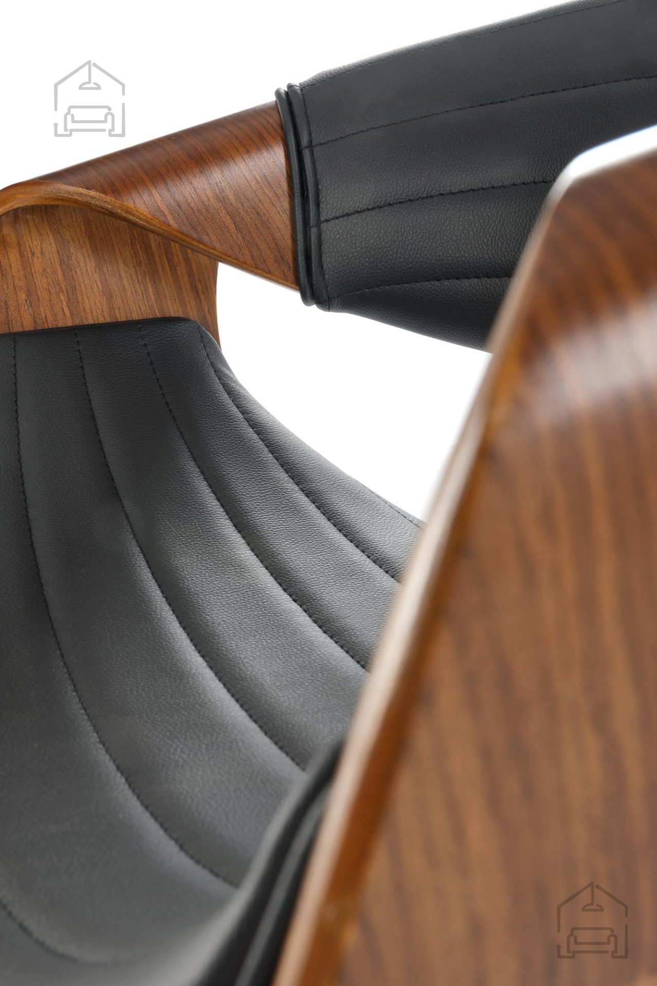 - Eleganten dizajn: Barski stol H123 je prava umetnina z dovršeno kombinacijo črne barve in oreha. Ta harmonična mešanica ustvarja sodoben, a hkrati topel videz, ki se brez težav zlije z različnimi notranjimi oblikovanji.