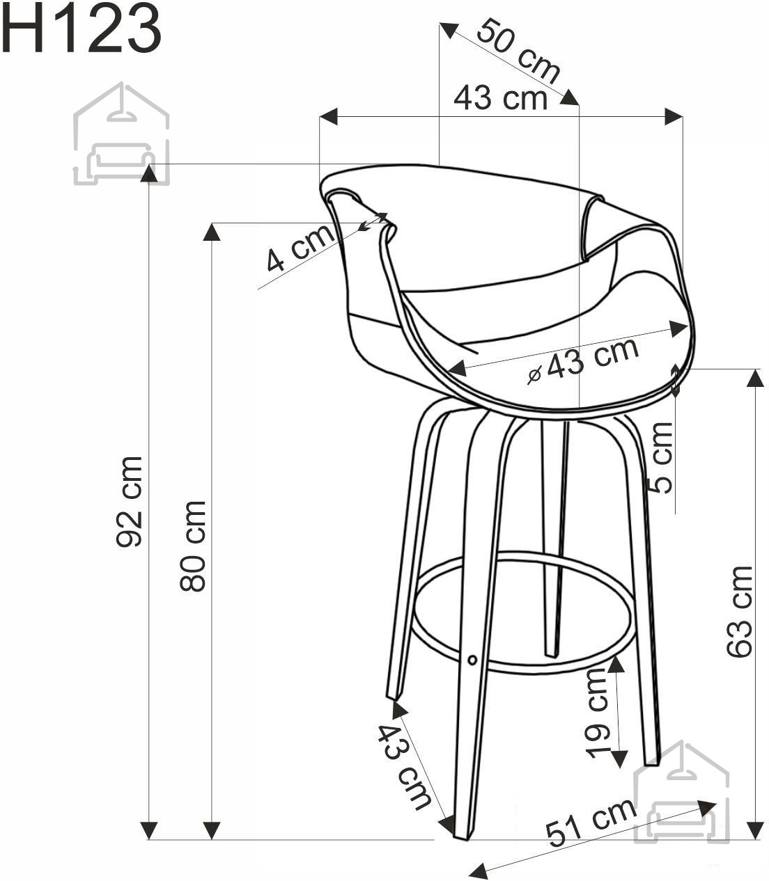 - Udobje in prilagodljivost: S svojimi dimenzijami 55x51x91 cm in višino sedišča 63 cm, je barski stol H123 zasnovan tako, da ponuja optimalno udobje med sedenjem. Ergonomska oblika nudi odlično podporo hrbtu, kar omogoča dolgotrajno sedenje brez občutka neudobja.