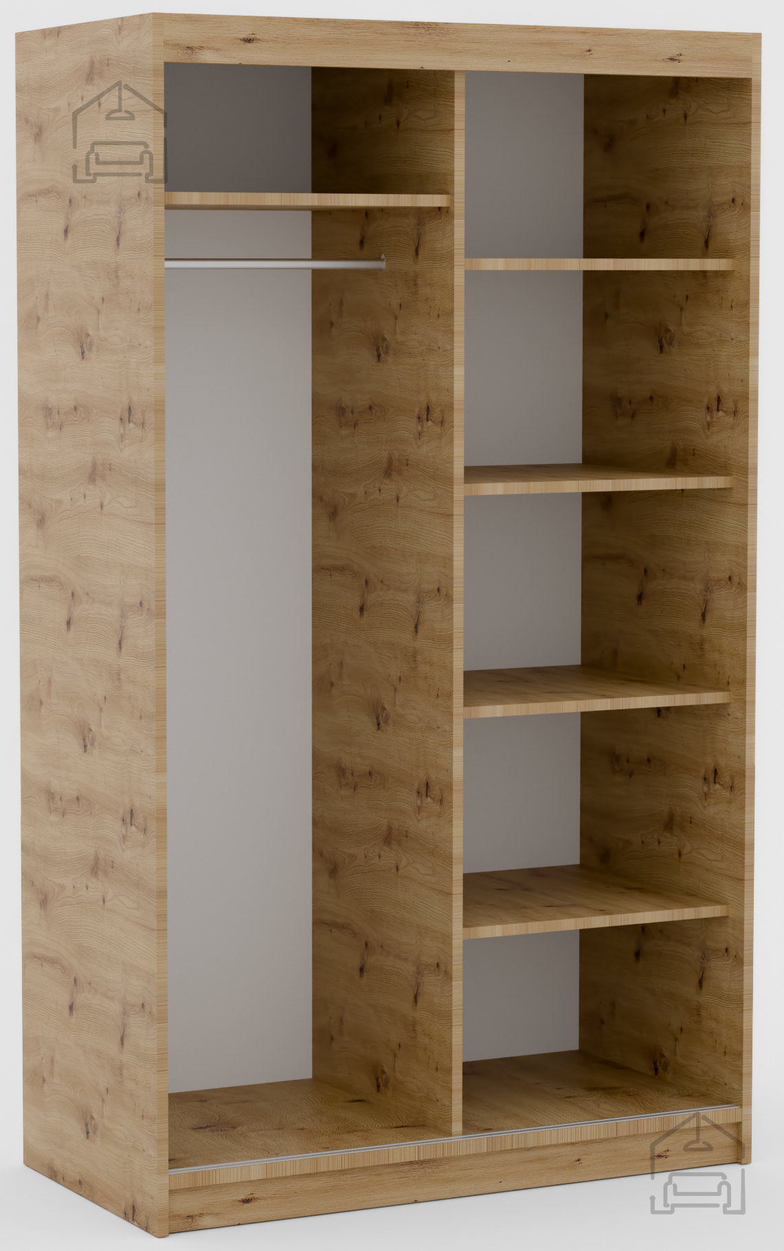 Der Schrank wird in der renommierten Fabrik ADRK in Polen hergestellt, wo besonderer Wert auf Qualität und Beständigkeit gelegt wird. Gefertigt ist er aus 16 mm starker laminierter Platte, die Stabilität und eine lange Lebensdauer garantiert. Das Schiebesystem basiert auf Aluminium-Schienen, die ein leises und leichtgängiges Öffnen der Türen ermöglichen und so den täglichen Gebrauch besonders angenehm machen. Die Oberfläche in Artisan-Eiche ist kratzfest und pflegeleicht – so bleibt der Schrank auch nach Jahren schön anzusehen.