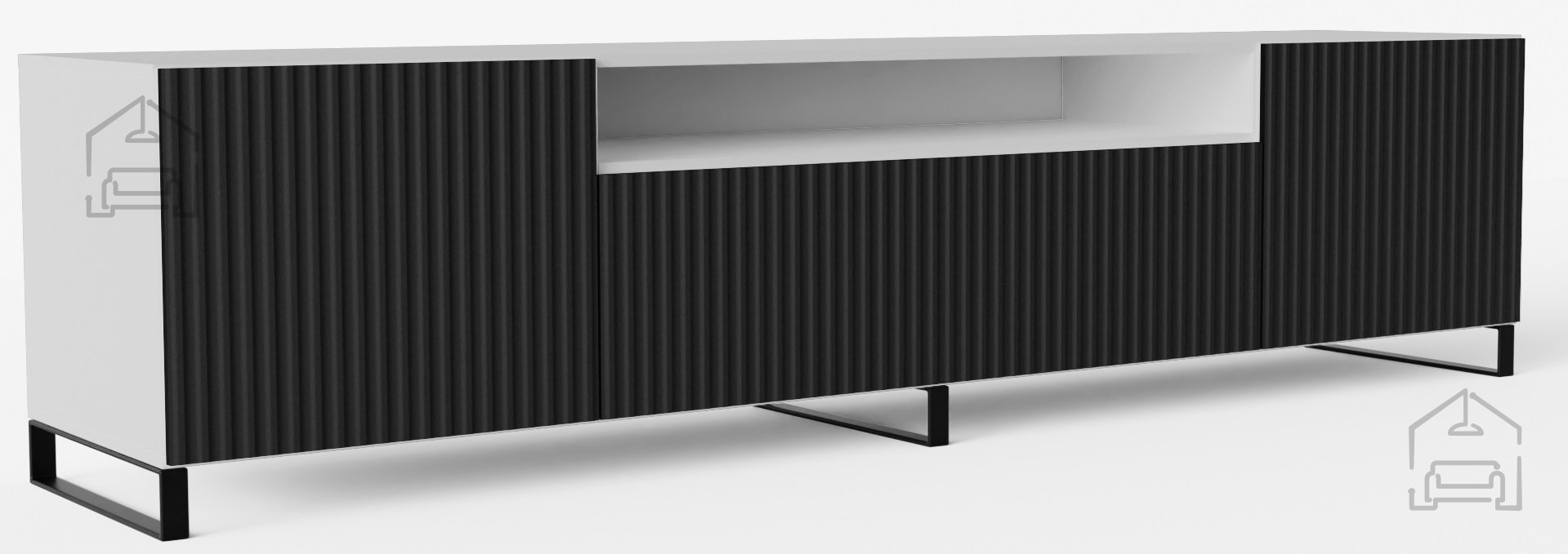 ADRK (Polen) 200 × 41 × 53 cm, laminierte Spanplatte 16 mm und gefräste MDF-Platte 18 mm: Das moderne TV-Board Noemi auf Füßen in Weiß-Schwarz vereint Ästhetik und Funktionalität in perfektem Gleichgewicht. Die klaren Linien und der elegante Farbkontrast fügen sich harmonisch in verschiedenste Einrichtungsstile ein – von skandinavisch-minimalistisch bis hin zu modern-urban. Dank der durchdachten Gestaltung bietet das Möbelstück ausreichend Platz für den Fernseher, zusätzliche Multimedia-Geräte sowie eine ordentliche Aufbewahrung von Kabeln, Fernbedienungen und anderen kleinen Alltagsgegenständen.