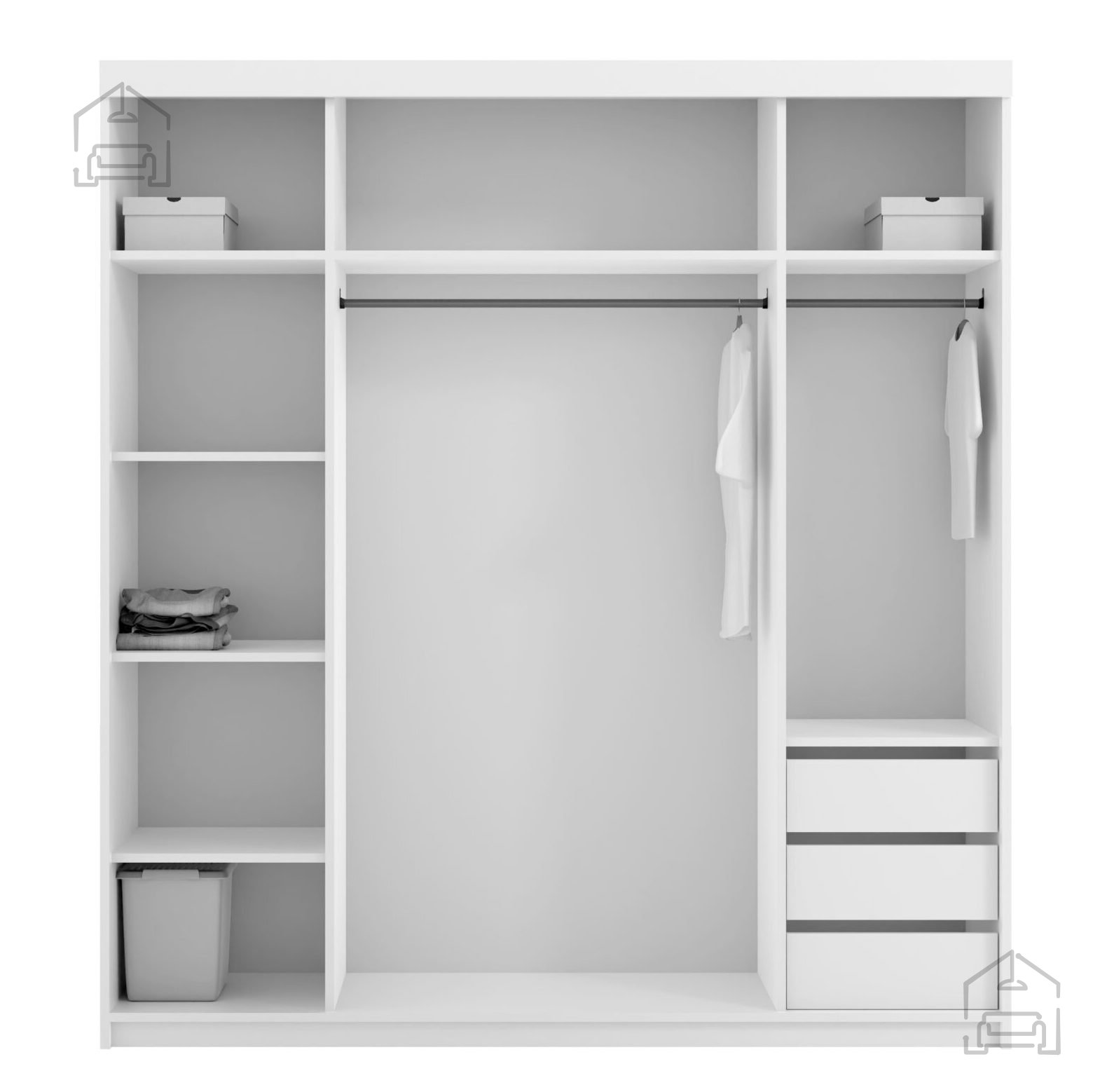 Der Kleiderschrank German 200 wurde entwickelt, um den Anforderungen moderner Haushalte gerecht zu werden, die viel Stauraum wünschen, ohne auf ansprechendes Design zu verzichten. Hinter den Schiebetüren verbirgt sich eine praktische Innenstruktur mit einer Kombination aus Ablagefächern und Kleiderstangen. So behalten Sie stets den Überblick und haben schnellen Zugriff auf Ihre Kleidung. Der Schiebemechanismus funktioniert leise und leichtgängig, wodurch sich der Schrank auch ideal für kleinere Schlafzimmer oder schmale Flure eignet, wo klassische Drehtüren zu viel Platz beanspruchen würden.