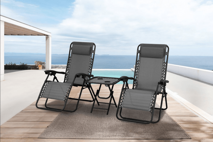 Der Rahmen aus hochwertigem Stahl ist mit einer Pulverbeschichtung versehen, die vor Rost und Witterungseinflüssen schützt. Diese zusätzliche Schicht verlängert die Lebensdauer des Sets deutlich und bewahrt sein gepflegtes Aussehen über viele Jahre hinweg. Trotz der stabilen Bauweise sind die Liegen leicht und lassen sich mühelos umstellen – je nach Wunsch und Platzbedarf. Der im Set enthaltene Tisch besitzt ein solides Stahlgestell und eine ausreichend große Fläche (50 × 50 × 50 cm), um Getränke, Bücher oder andere Utensilien für einen gemütlichen Nachmittag darauf abzustellen.